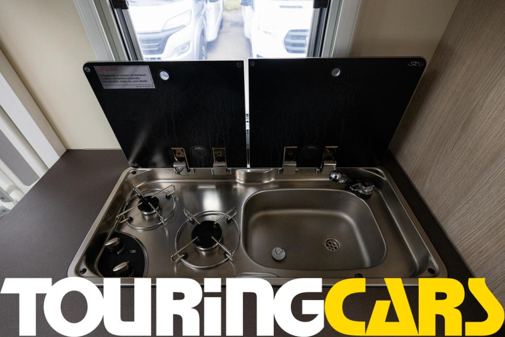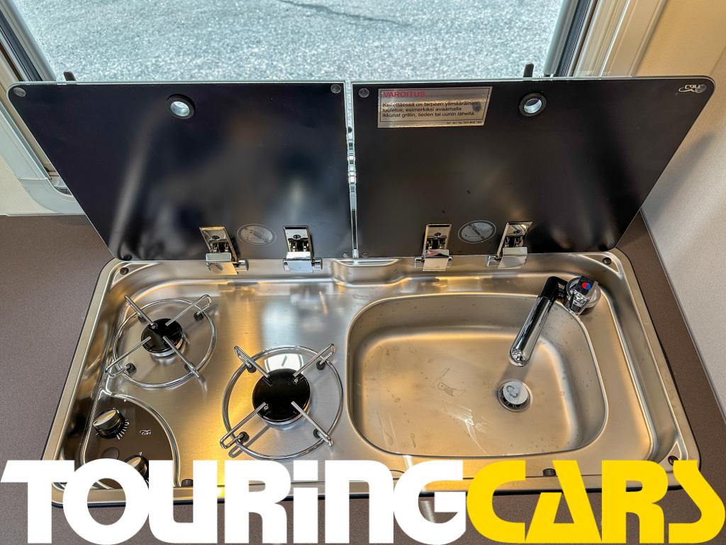 2-liekkinen liesi-pesuallasyhdistelmä lasikannella