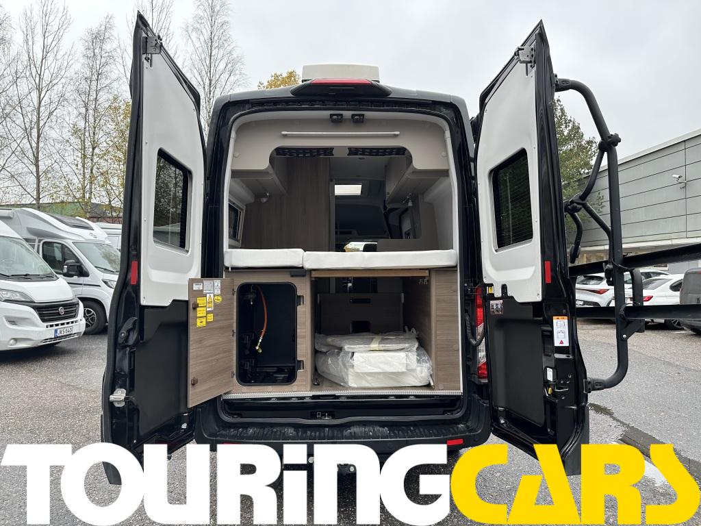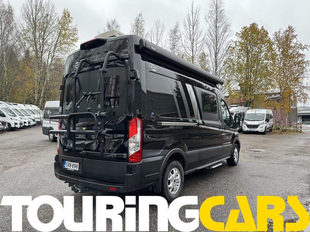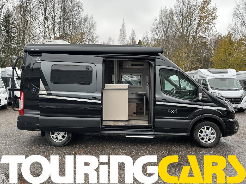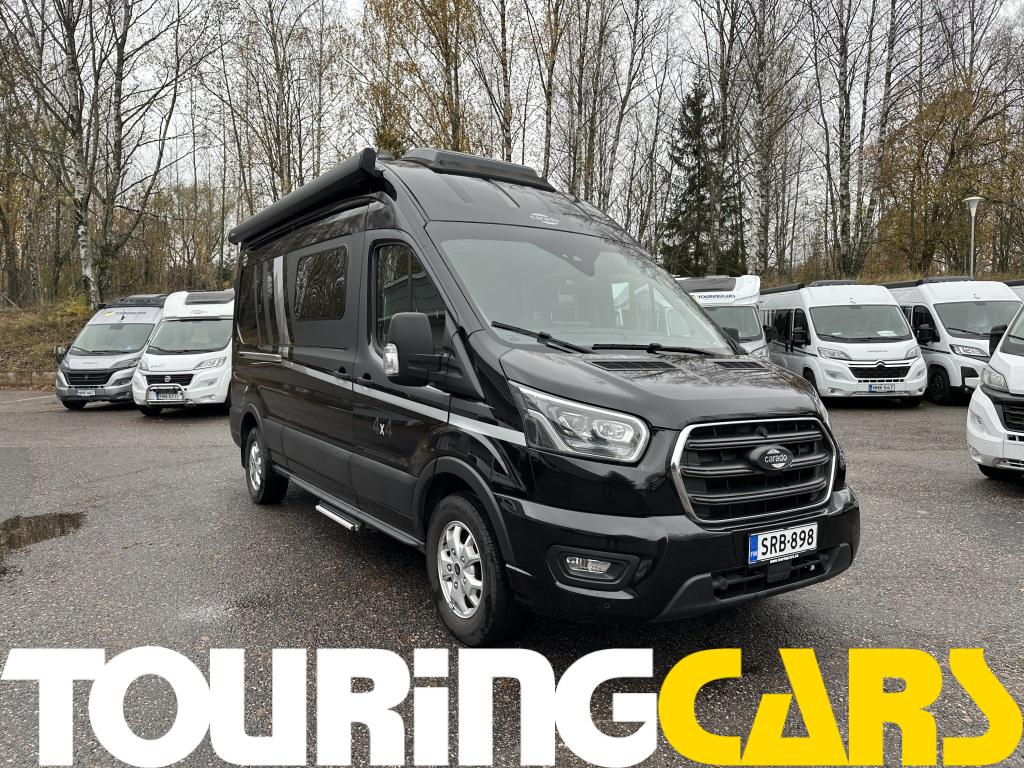 Carado CV590 4×4 kompakti ja monipuolinen retkeilyauto, jossa yhdistyy Ford Transit -alustan luotettavuus, neliveto, tehokas 170 hv moottori ja laadukas saksalainen sisustus.