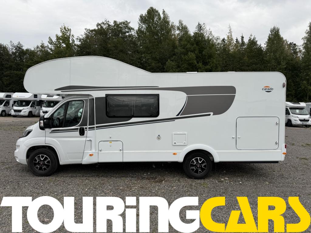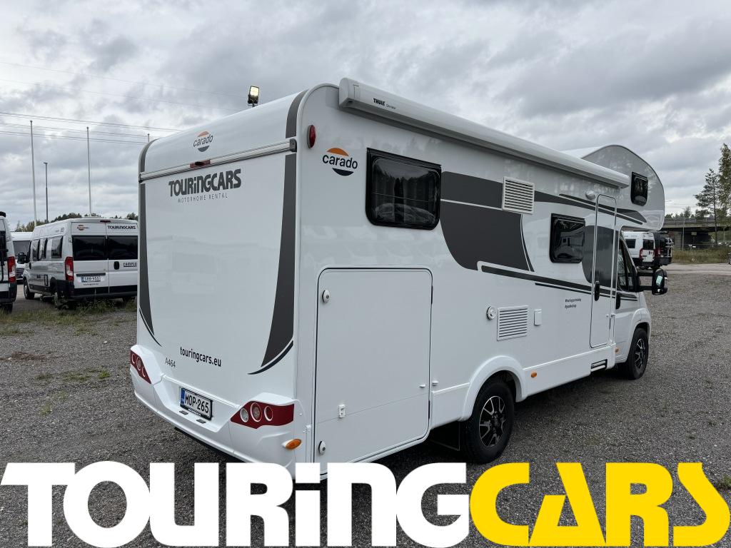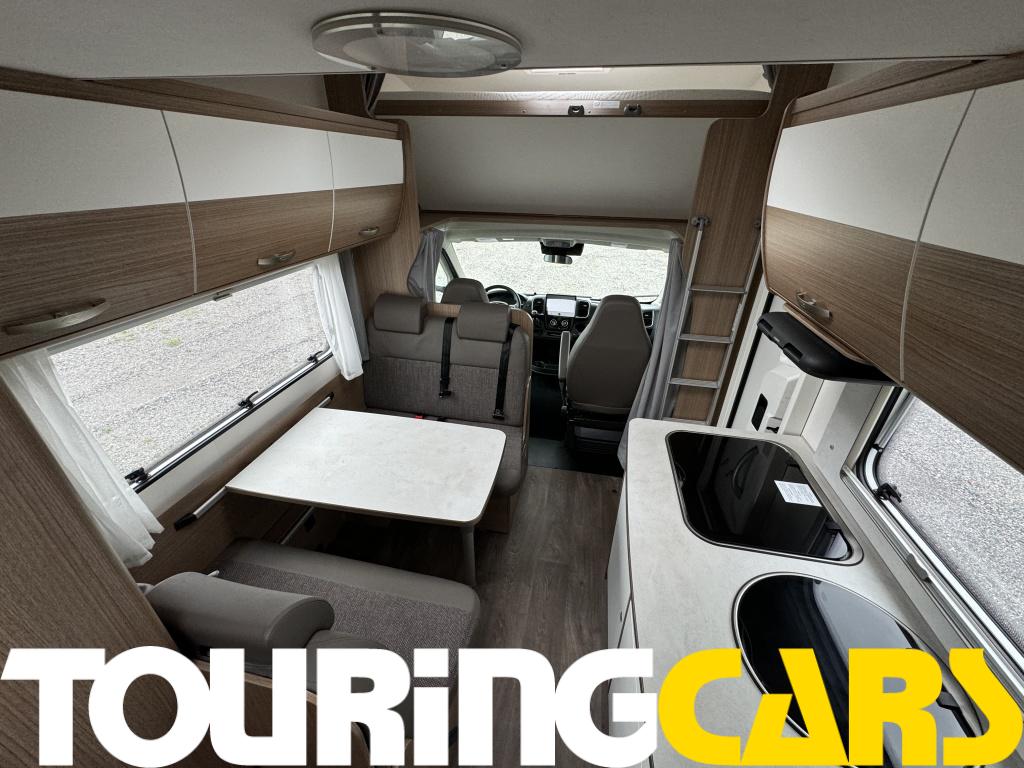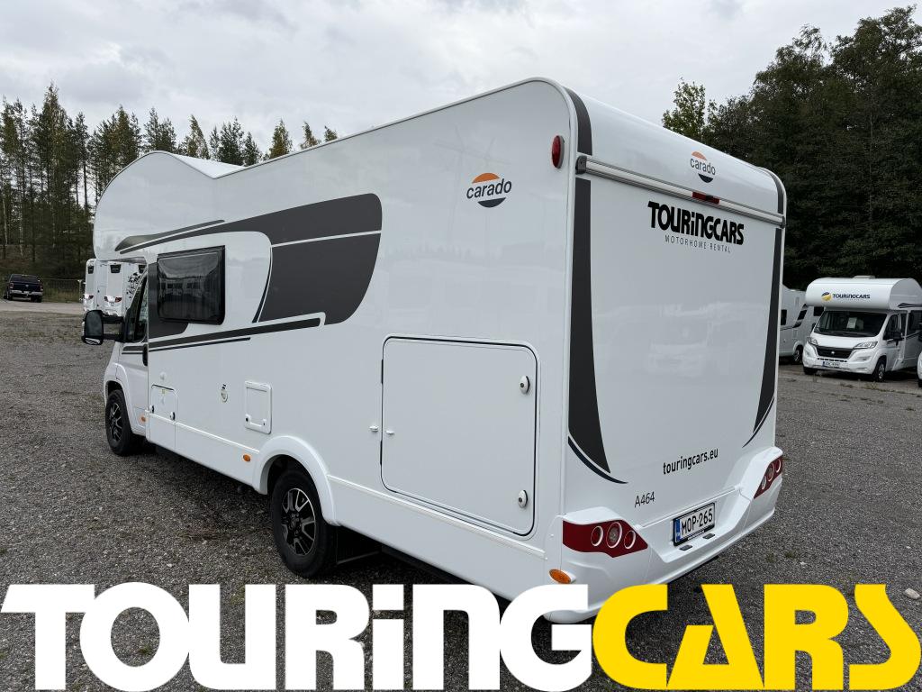Kuljettajan ja etumatkustajan istuimet verhoiltu asunto-osan kankaalla, kaksi käsinojaa