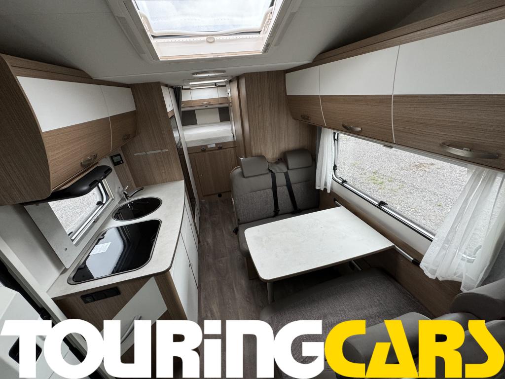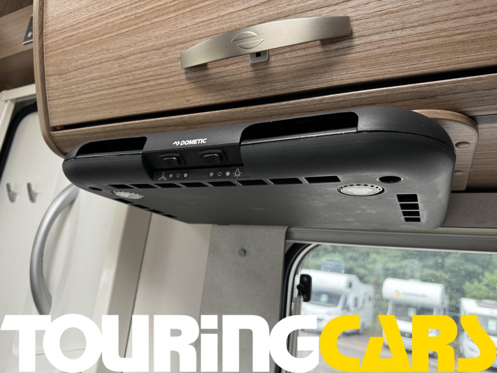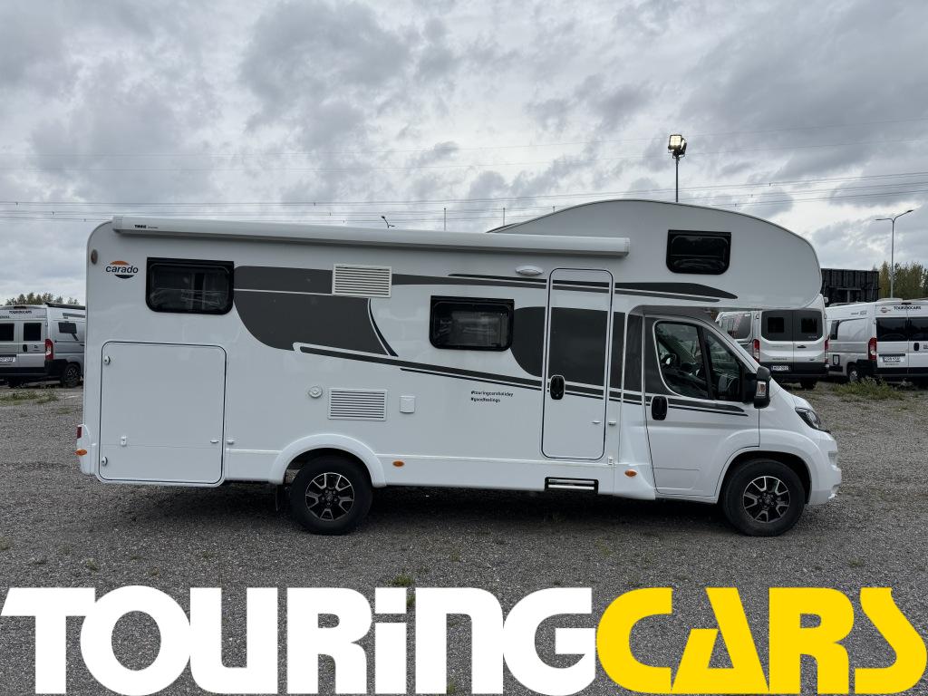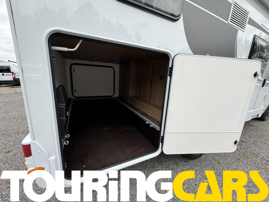 Kuljettajan ja etumatkustajan istuimet verhoiltu asunto-osan kankaalla, kaksi käsinojaa