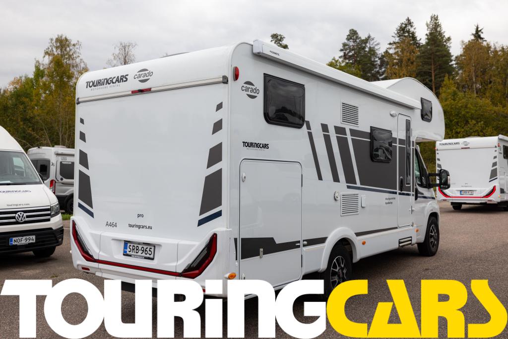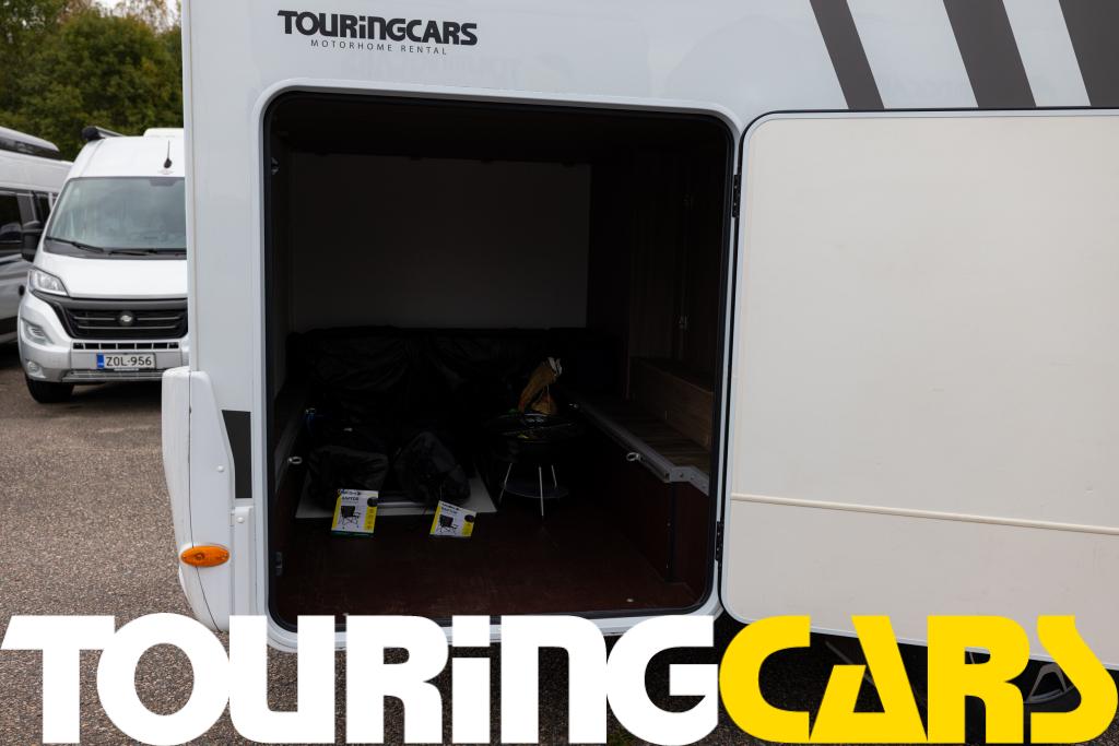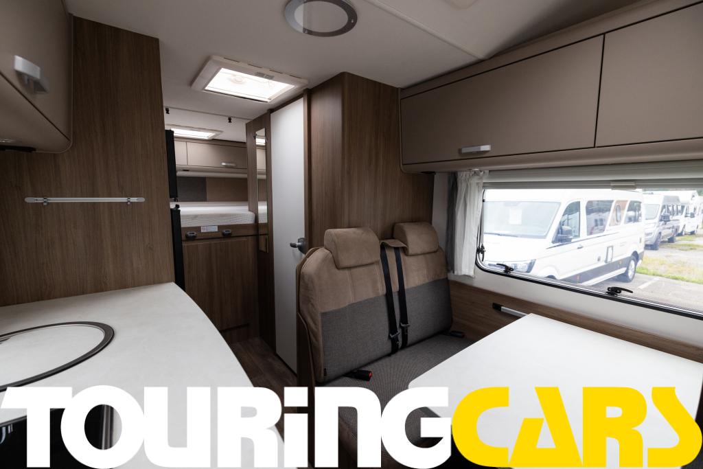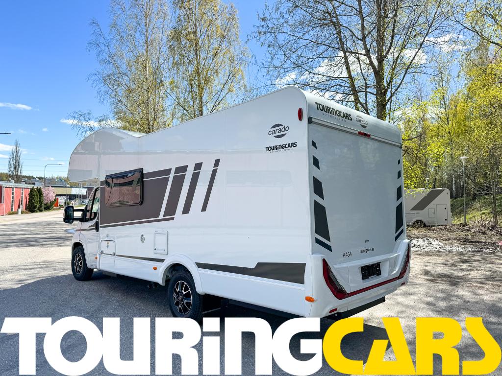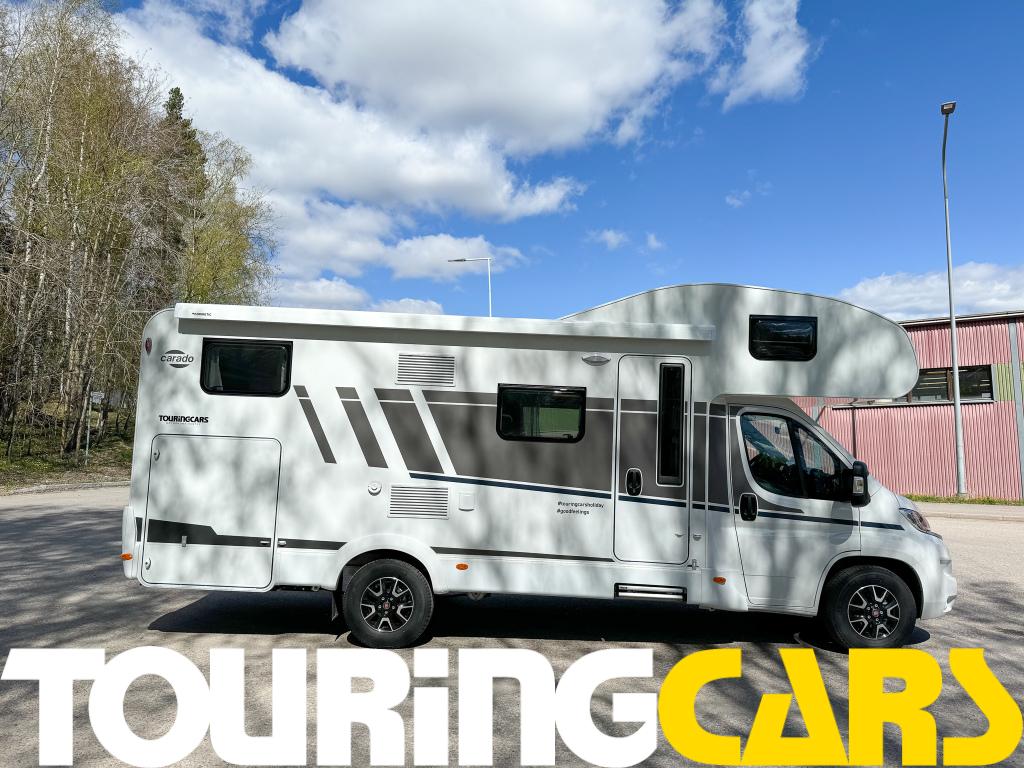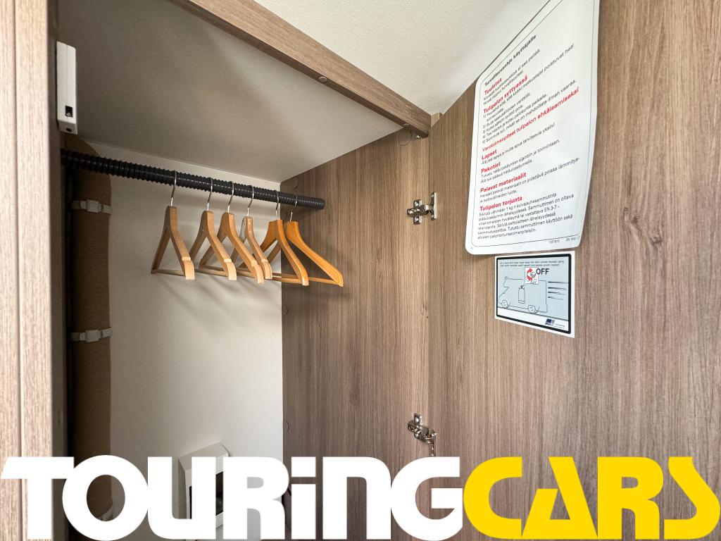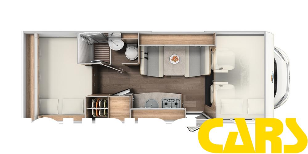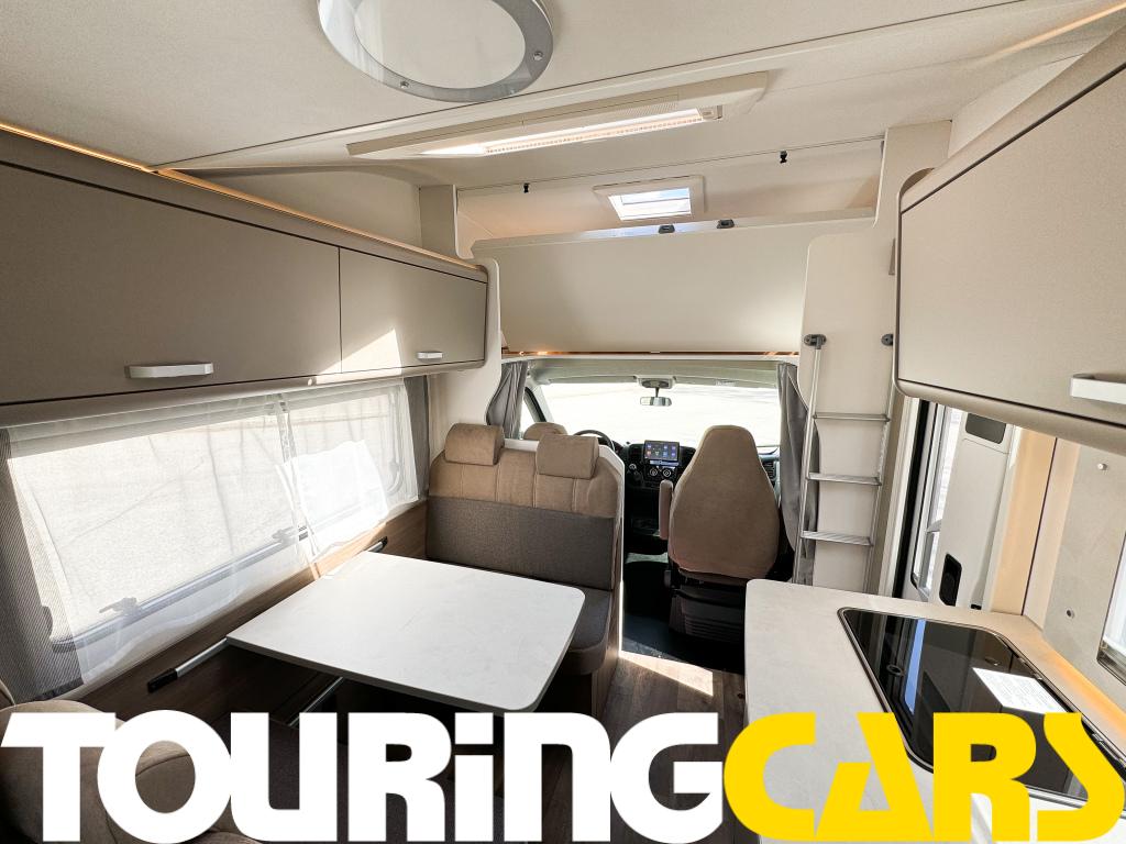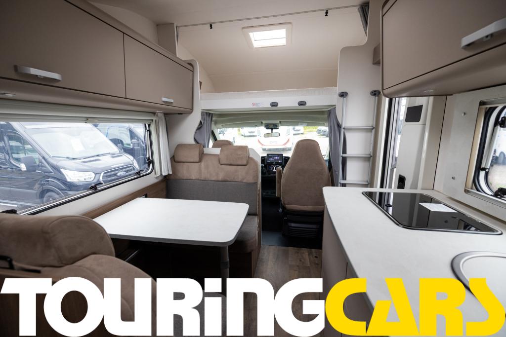 Ohjaamon istuimet verhoiltu asunto-osan kankaalla, kaksi käsinojaa