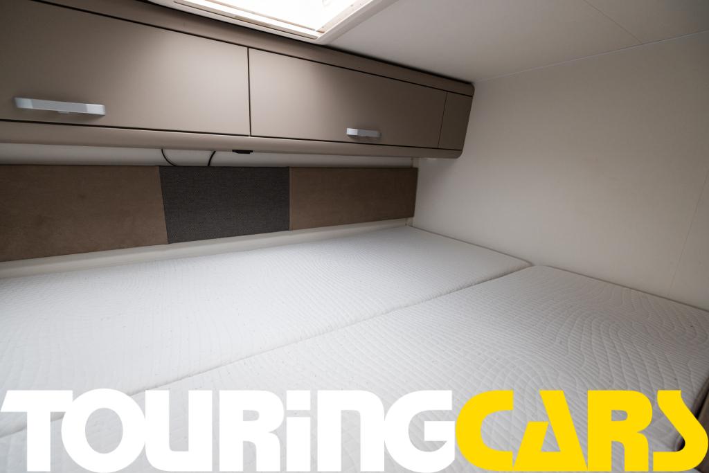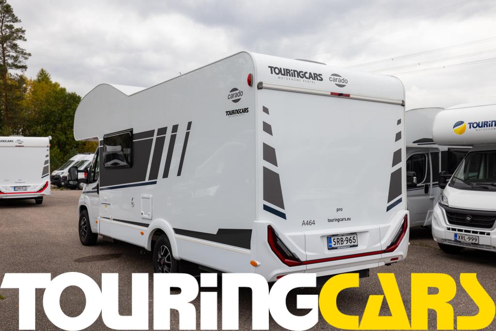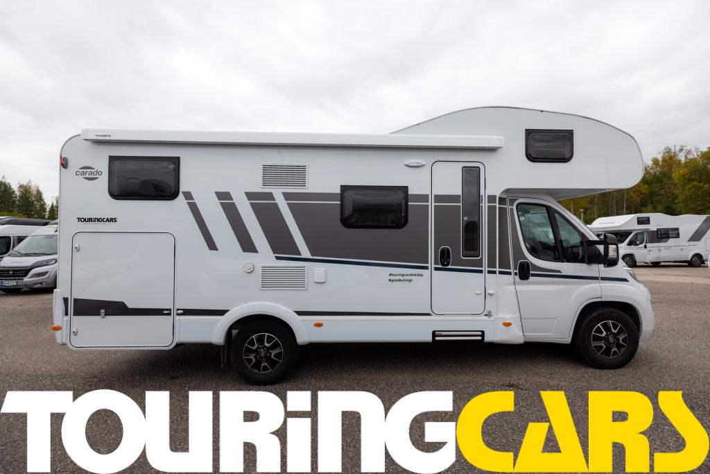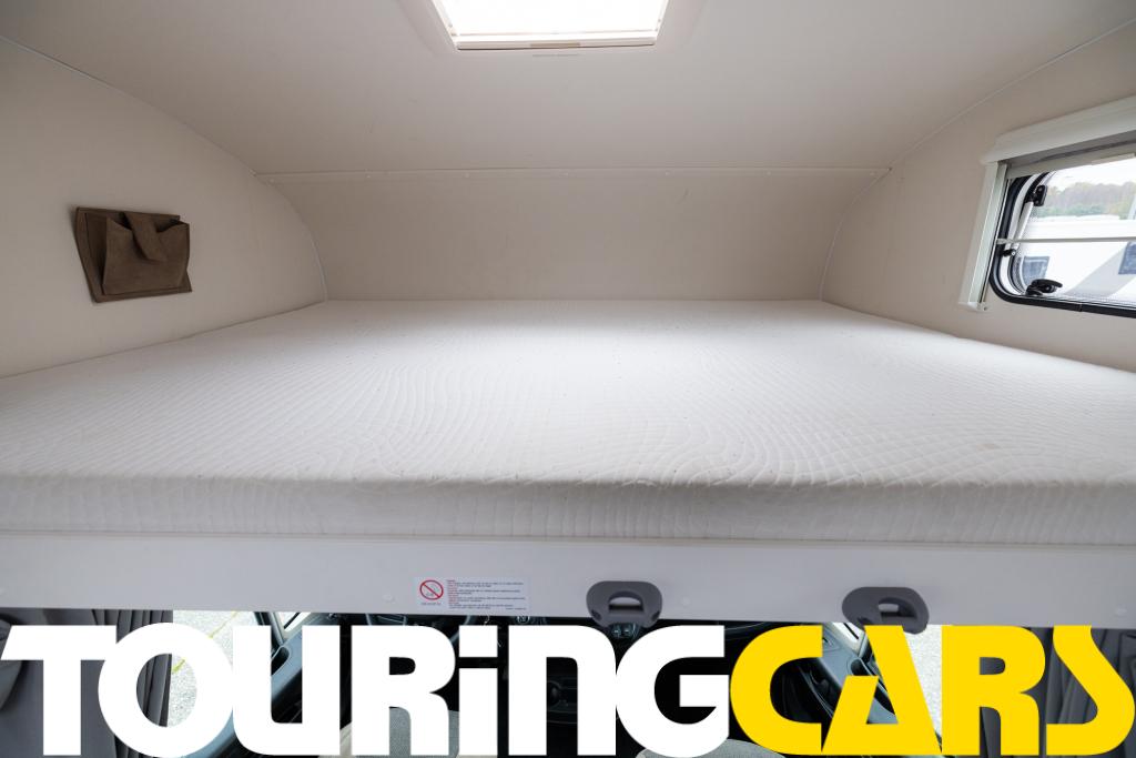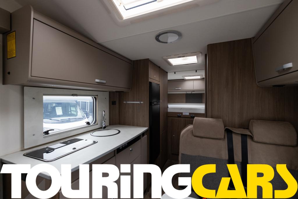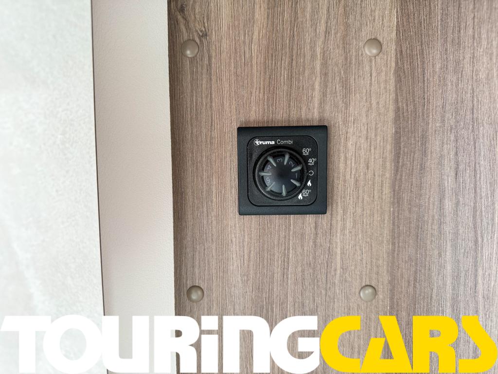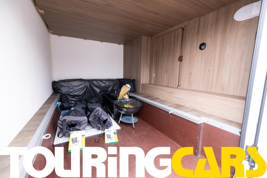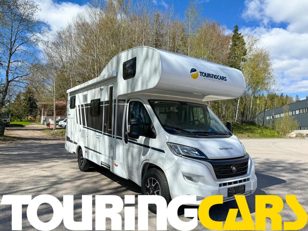 Ohjaamon istuimet verhoiltu asunto-osan kankaalla, kaksi käsinojaa