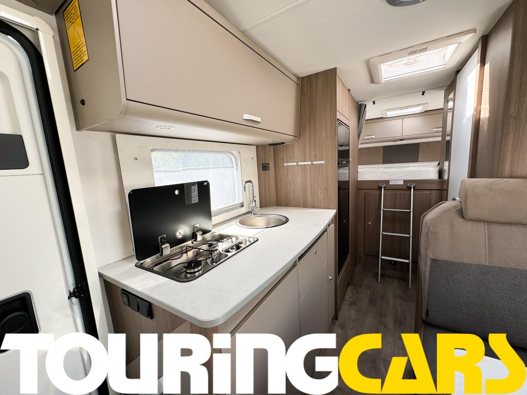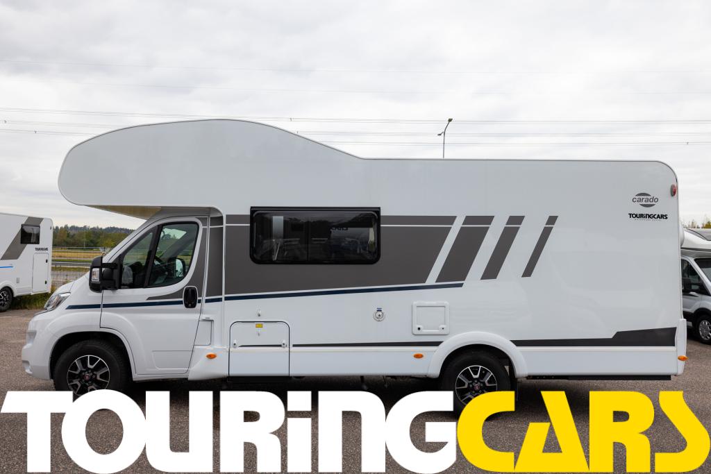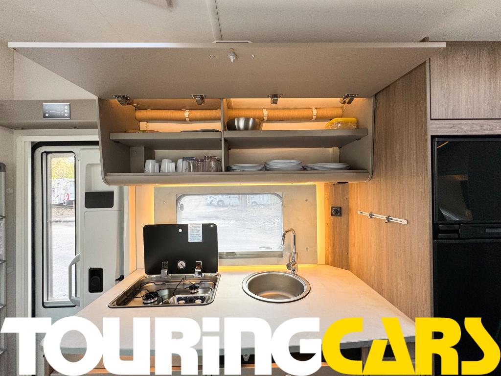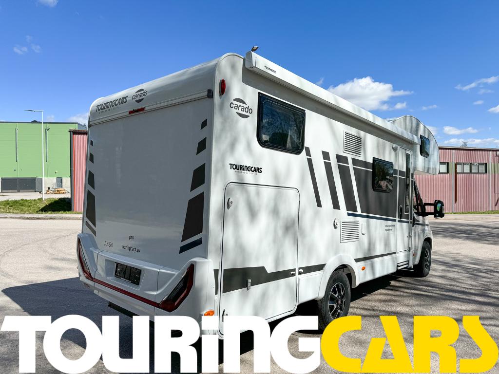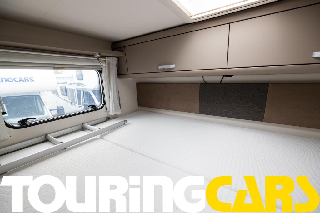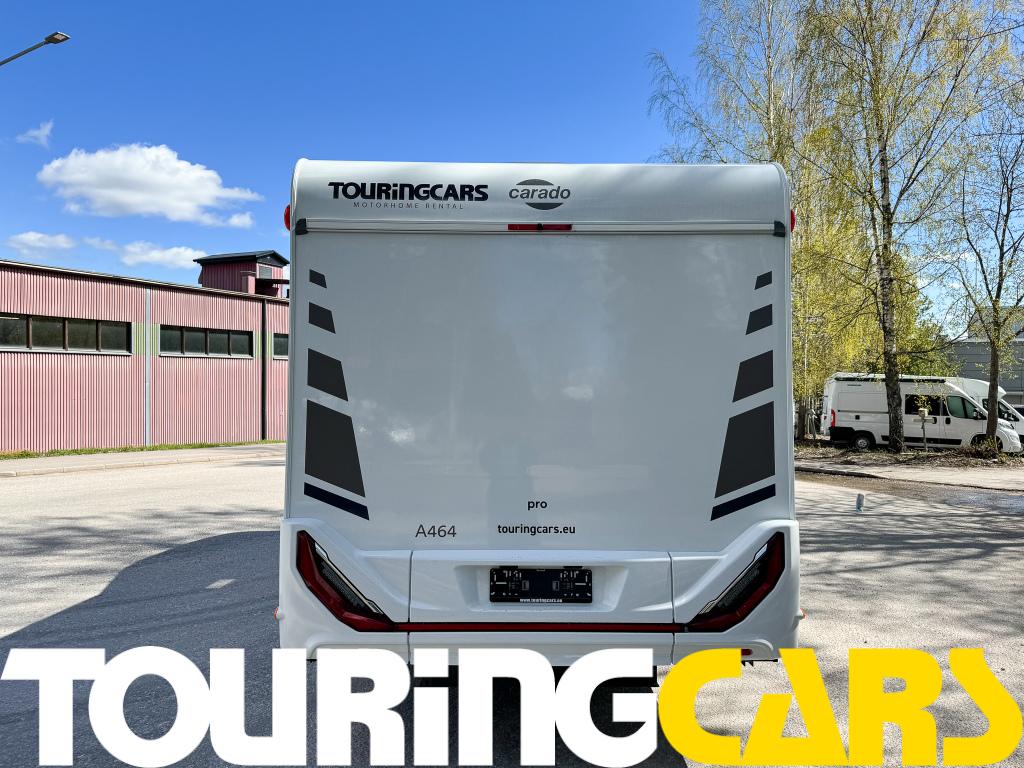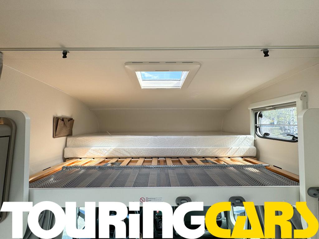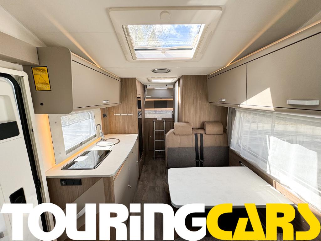 Ohjaamon istuimet verhoiltu asunto-osan kankaalla, kaksi käsinojaa
