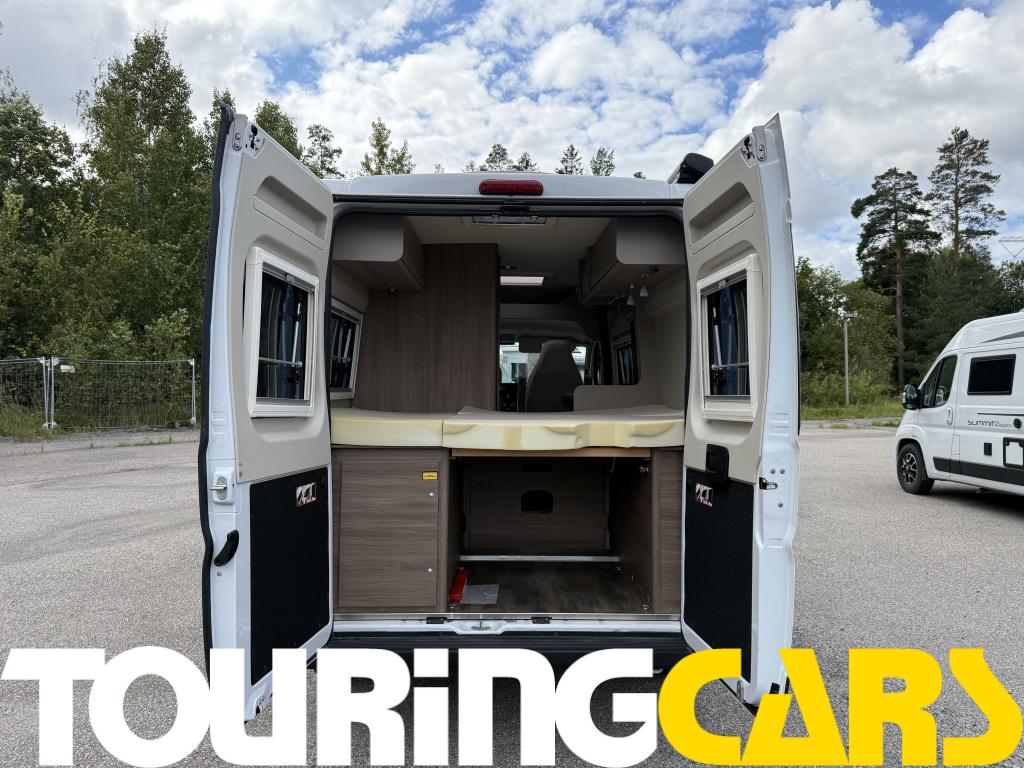 Leveä asunto-osan ulkoaskelma Pöydänjatke istuinryhmään Peruutuskameran kaapelivalmius