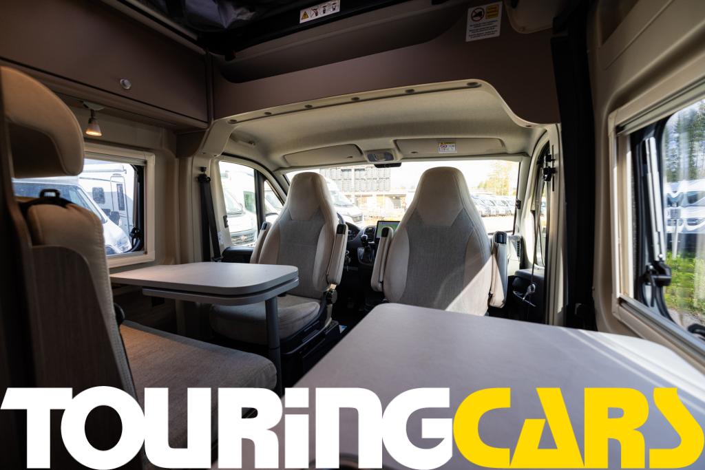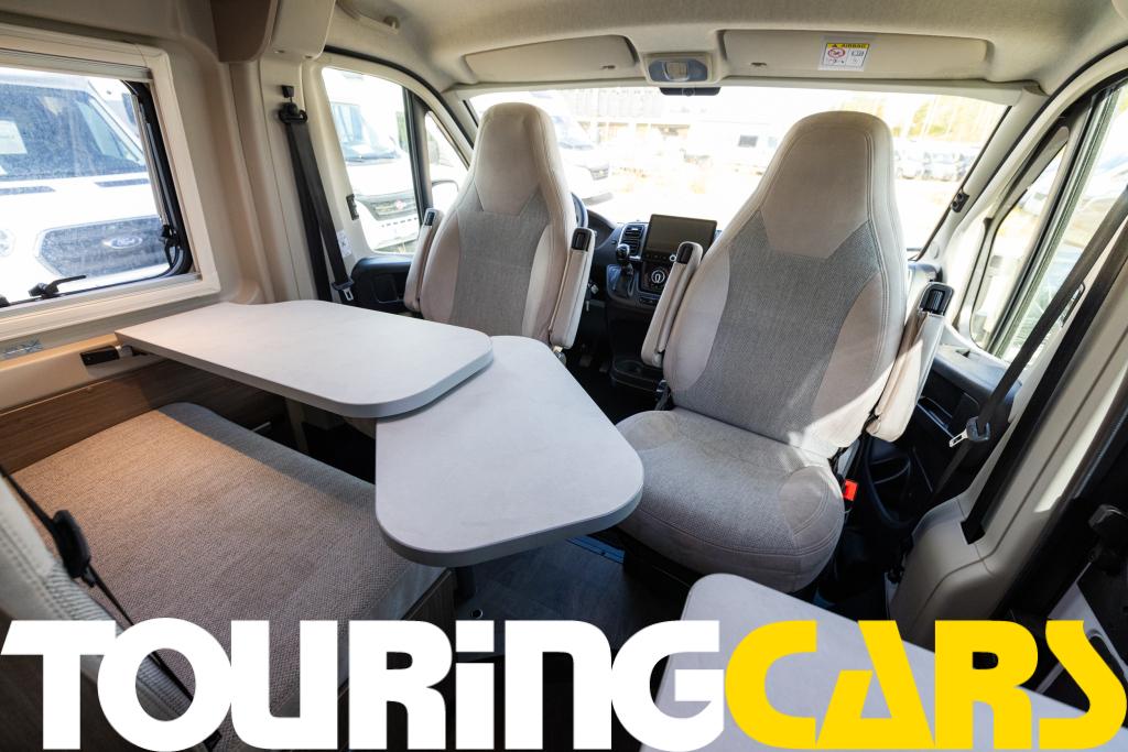 Ohjaamon istuimet verhoiltu asuinosan kankaalla