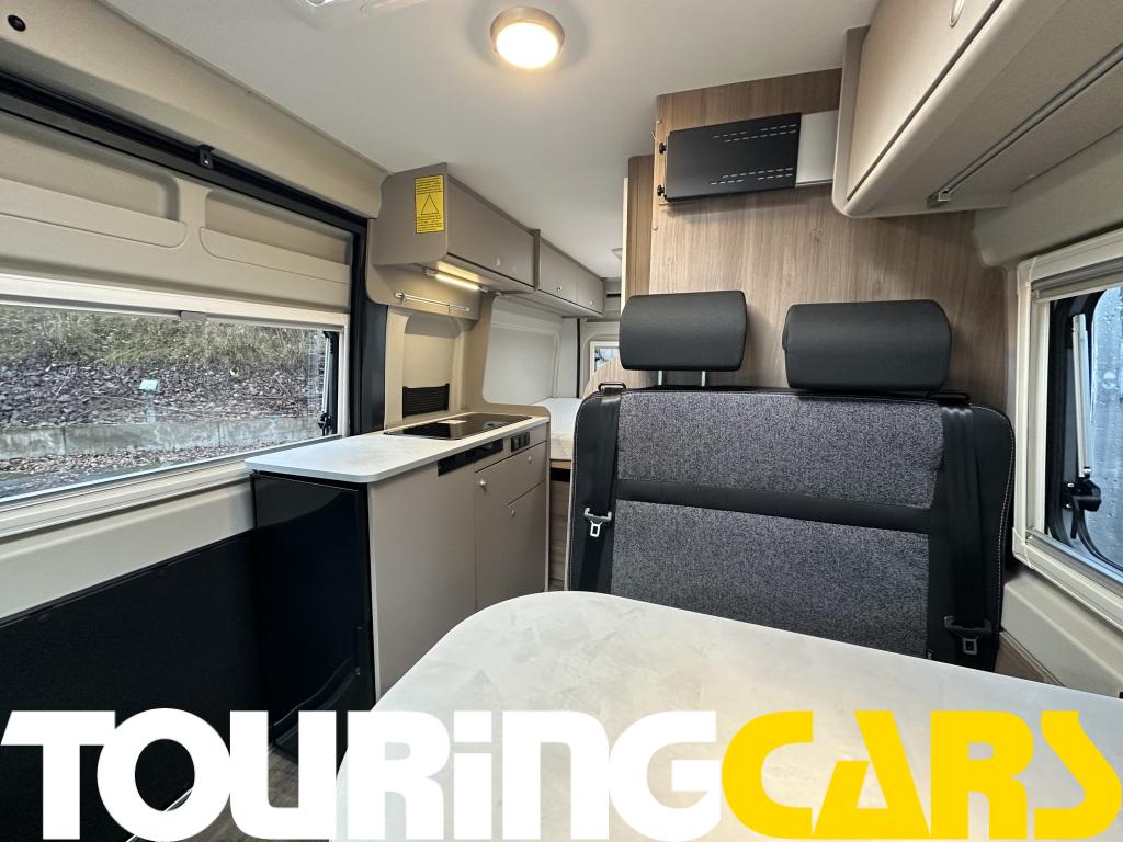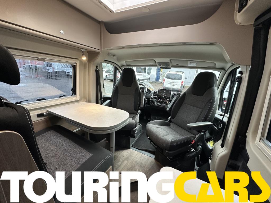 Ohjaamon istuimet verhoiltu asuinosan kankaalla