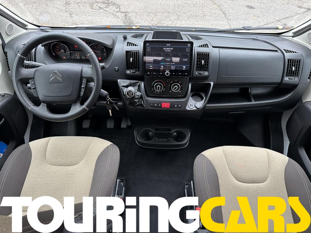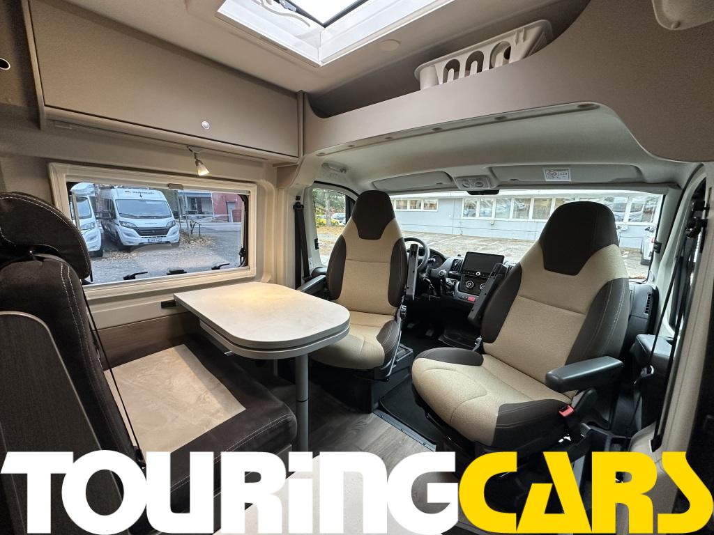 Ohjaamon istuimet verhoiltu asuinosan kankaalla