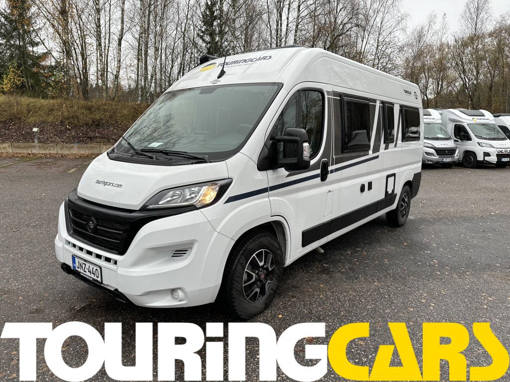 Kattoluukku 40 × 40 cm istuinryhmän yllä, pimennys- ja hyttysverho sis.
