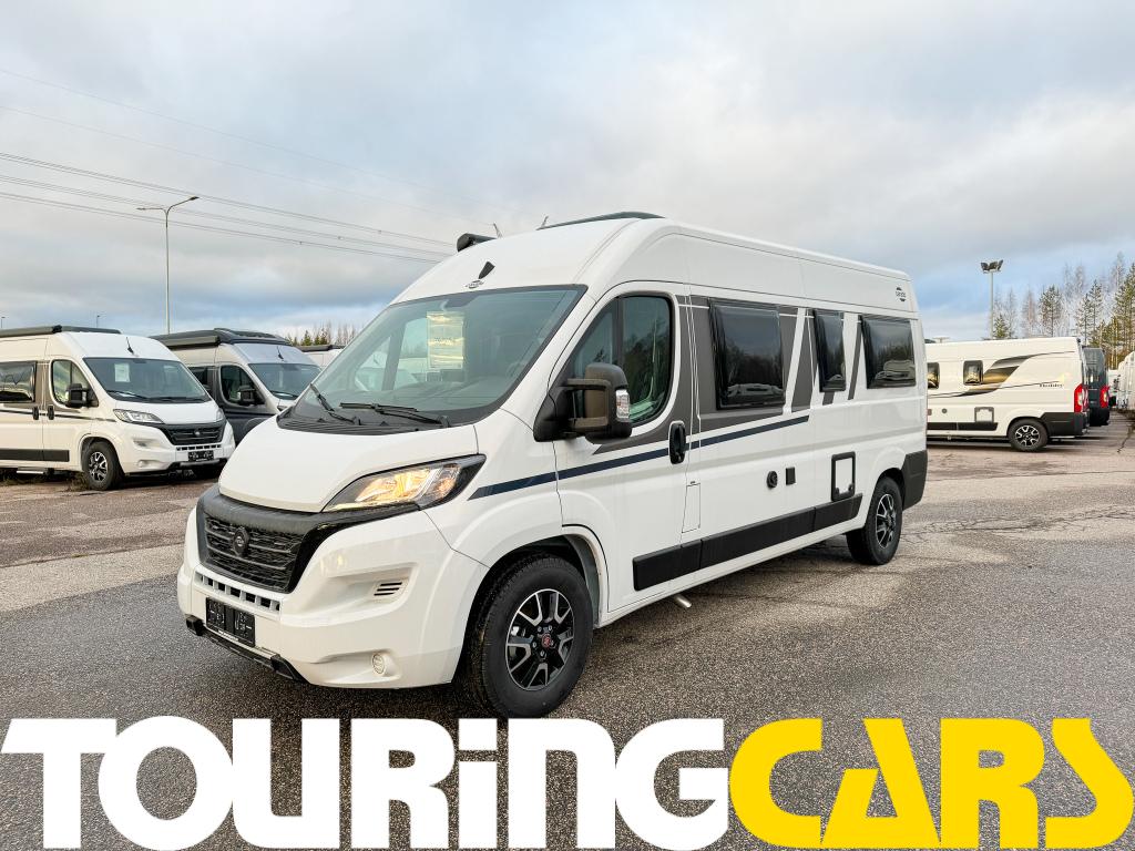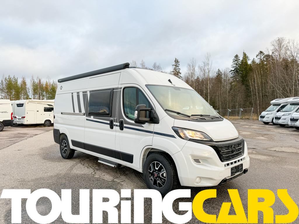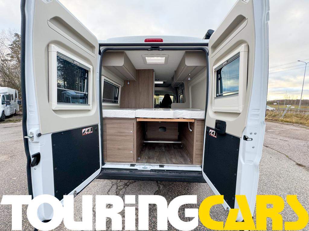 Kattoluukku 40 × 40 cm istuinryhmän yllä, pimennys- ja hyttysverho sis.