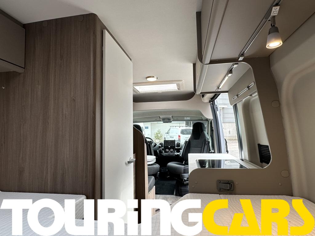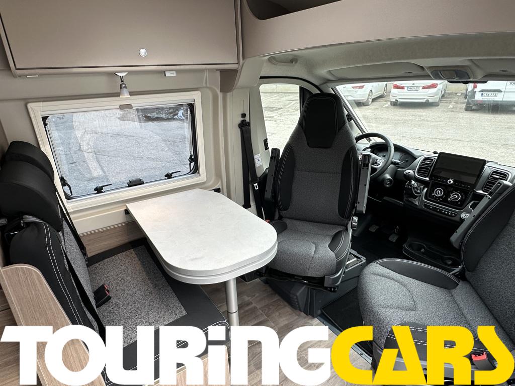 Ohjaamon istuimet verhoiltu asuinosan kankaalla