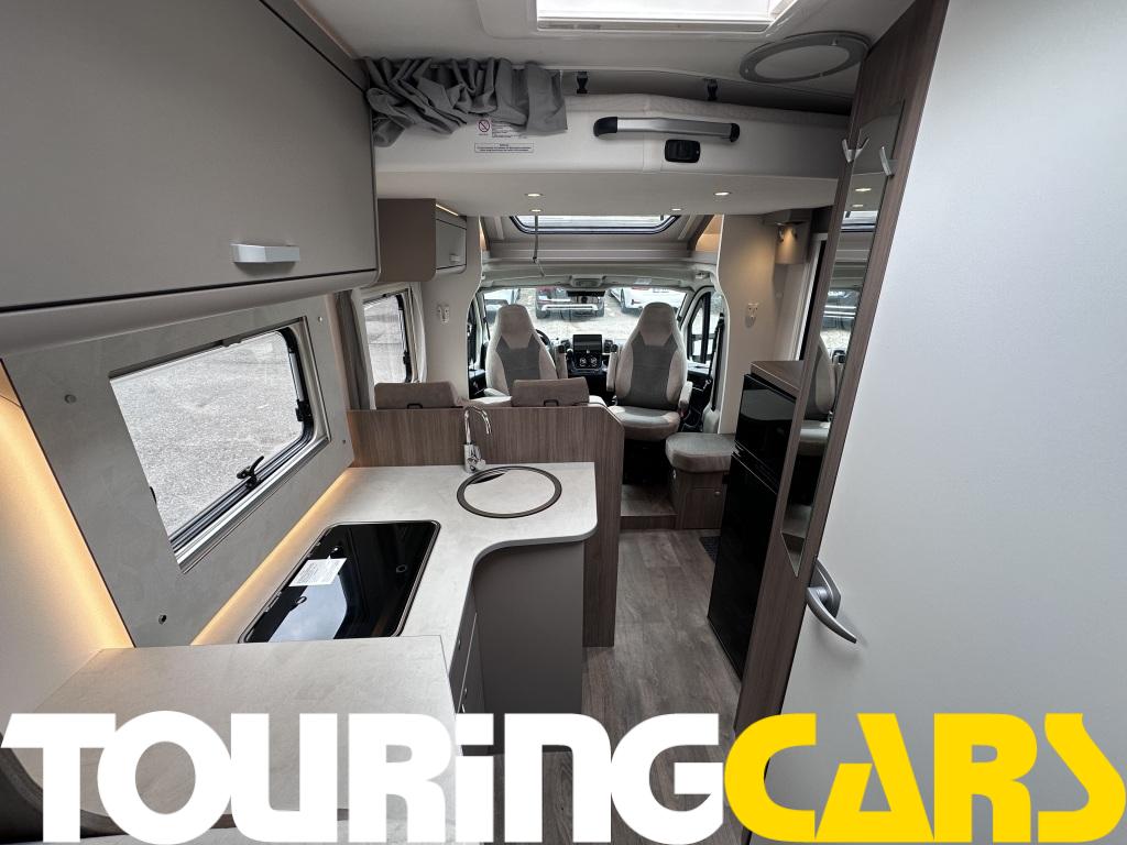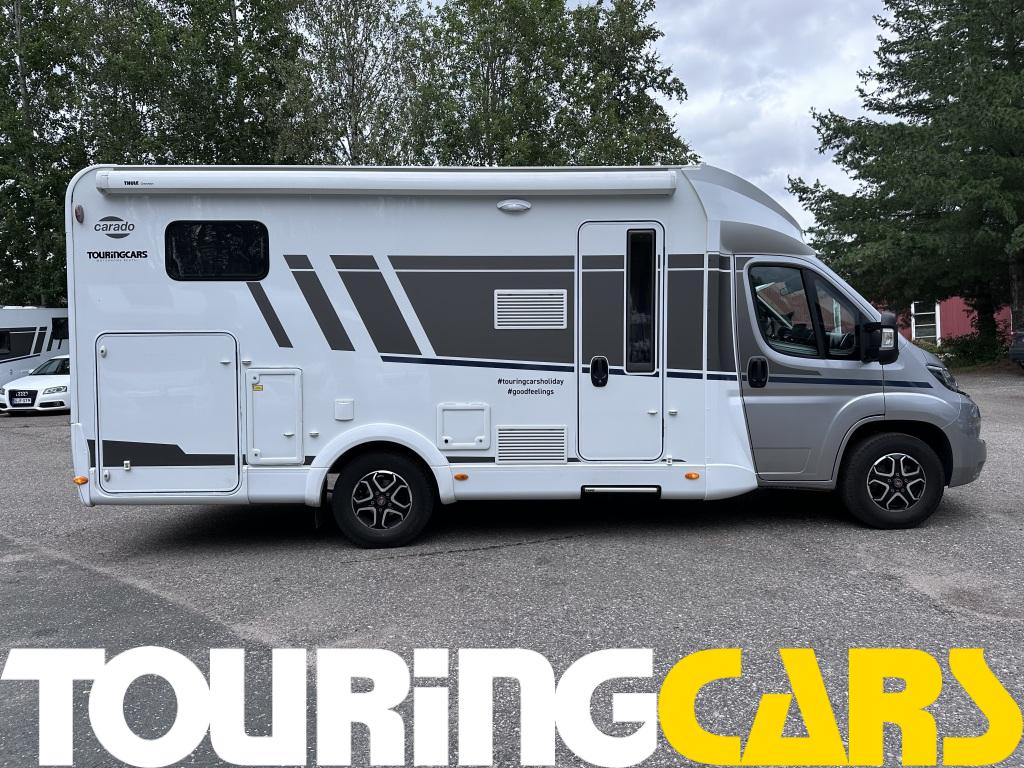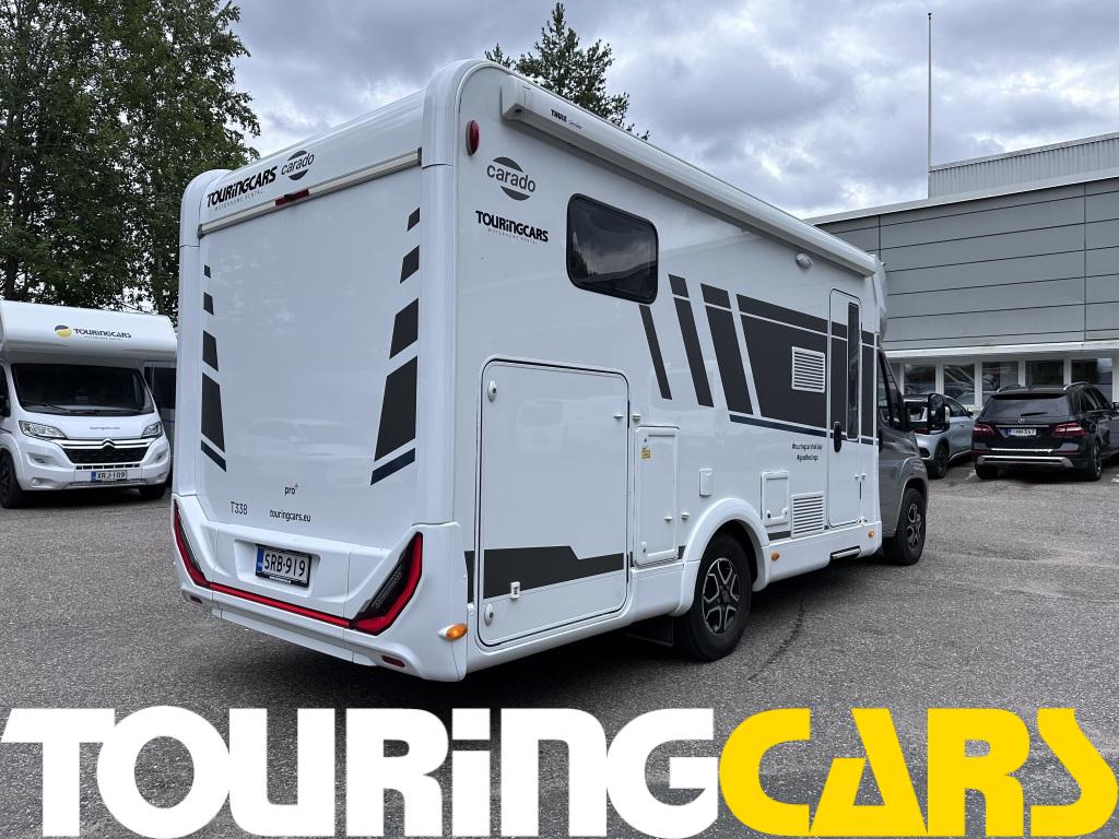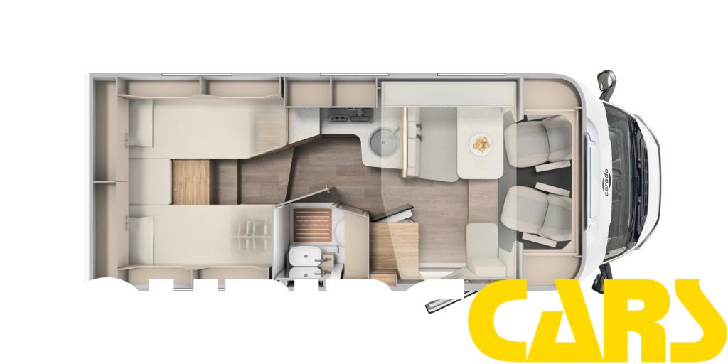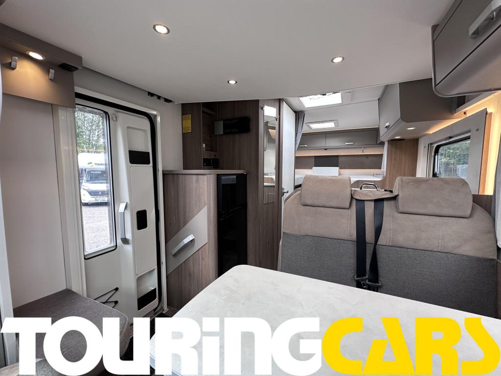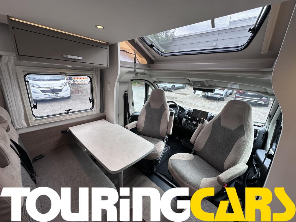 Ohjaamon istuimet verhoiltu asunto-osan kankaalla, kaksi käsinojaa