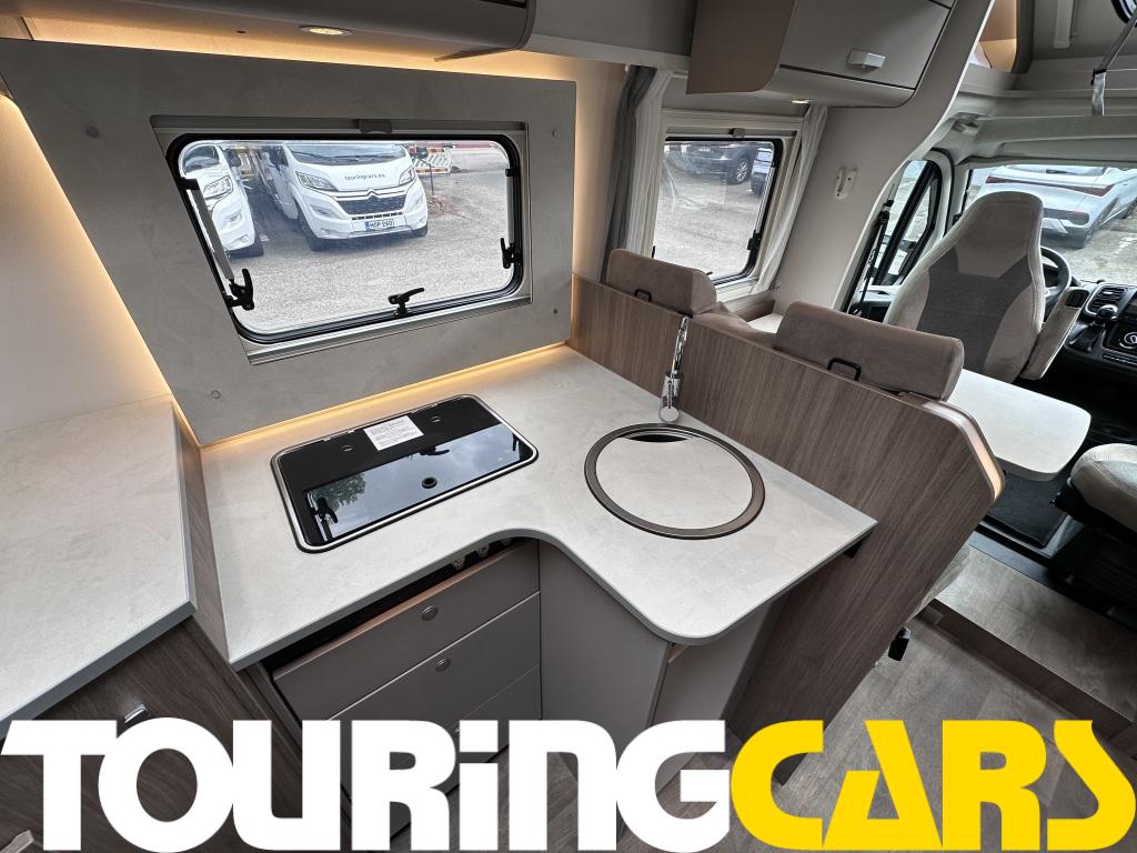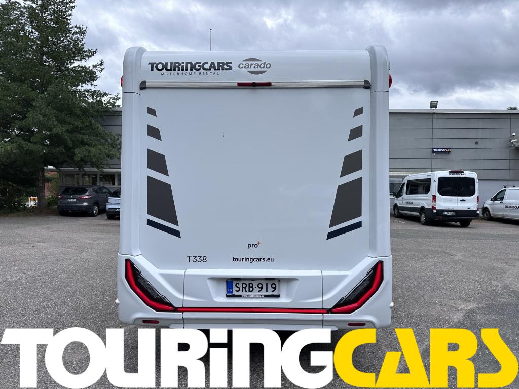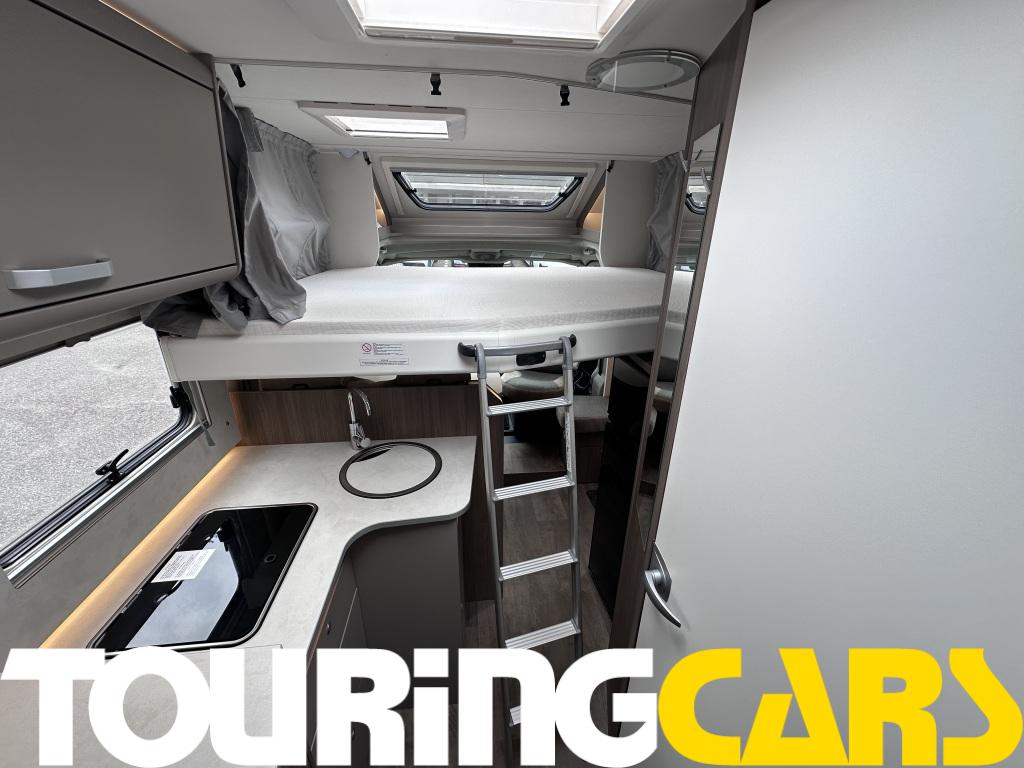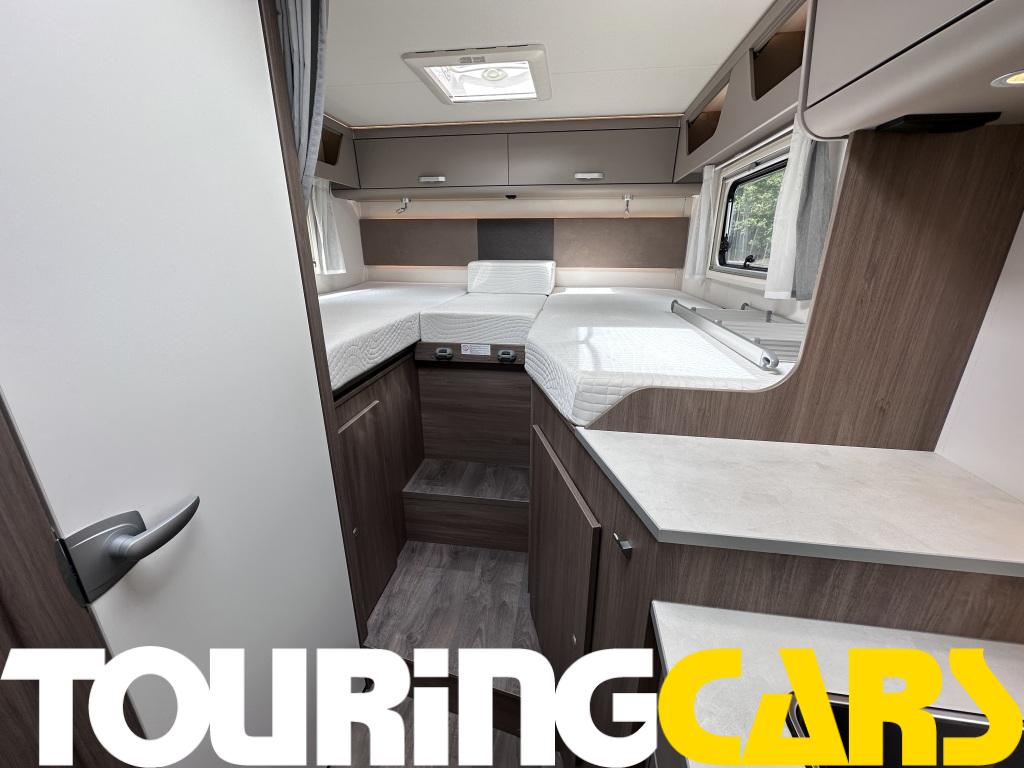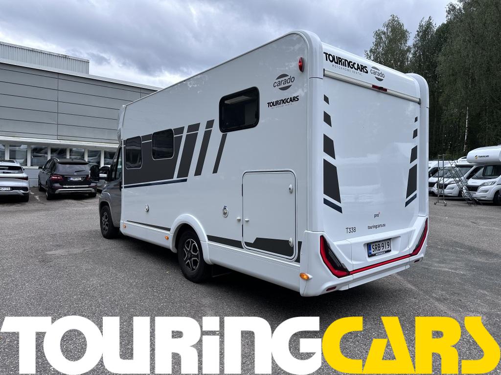 Ohjaamon istuimet verhoiltu asunto-osan kankaalla, kaksi käsinojaa