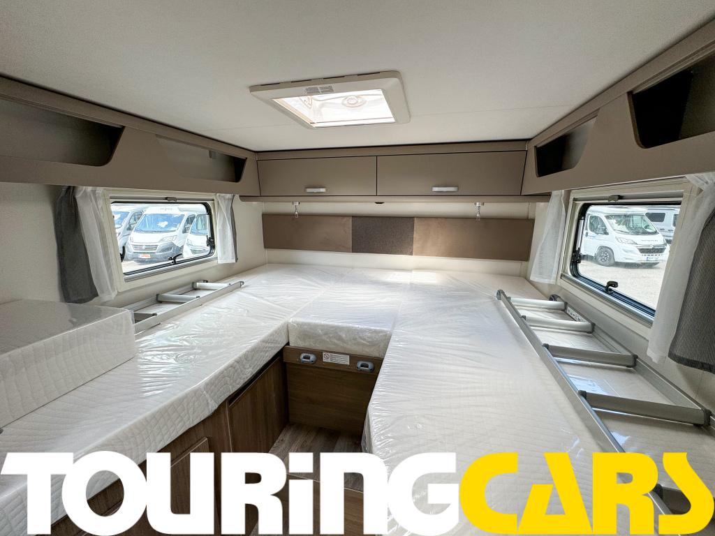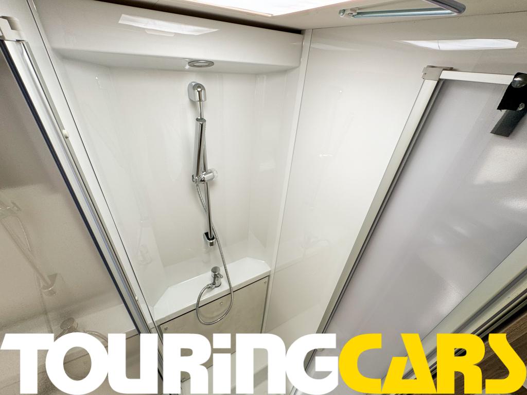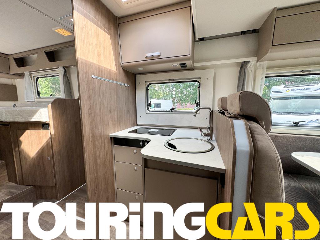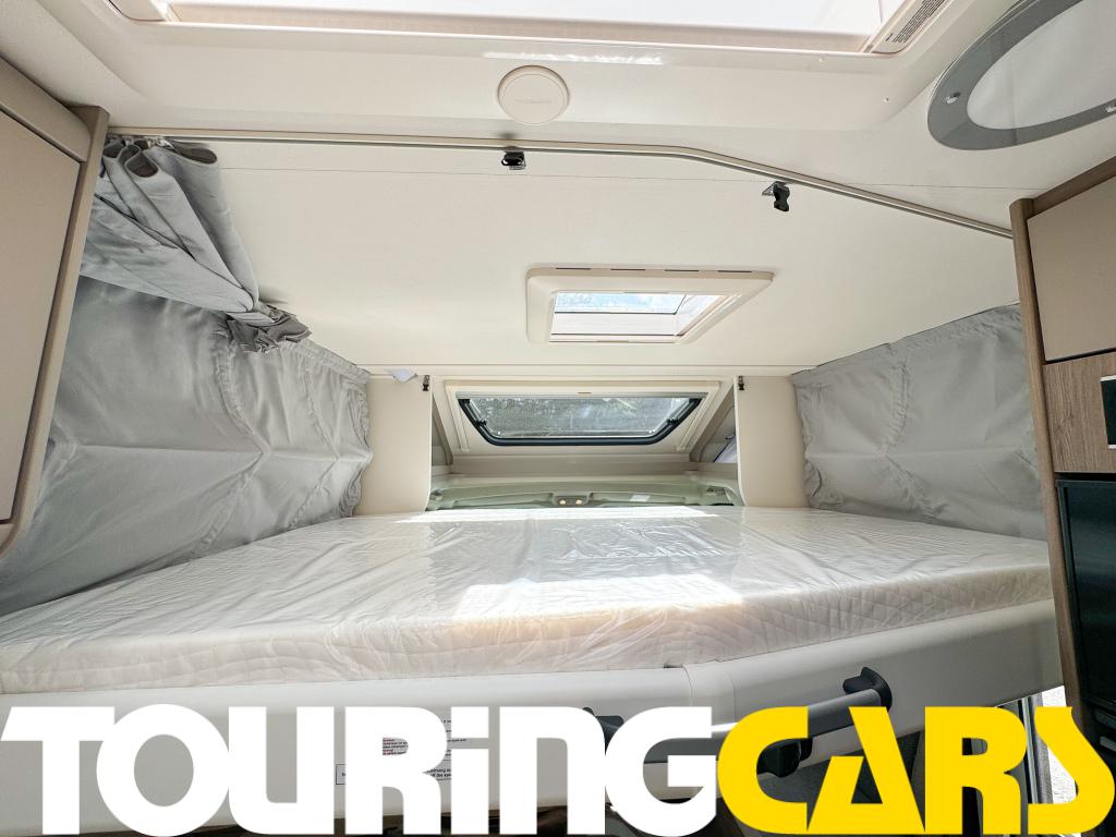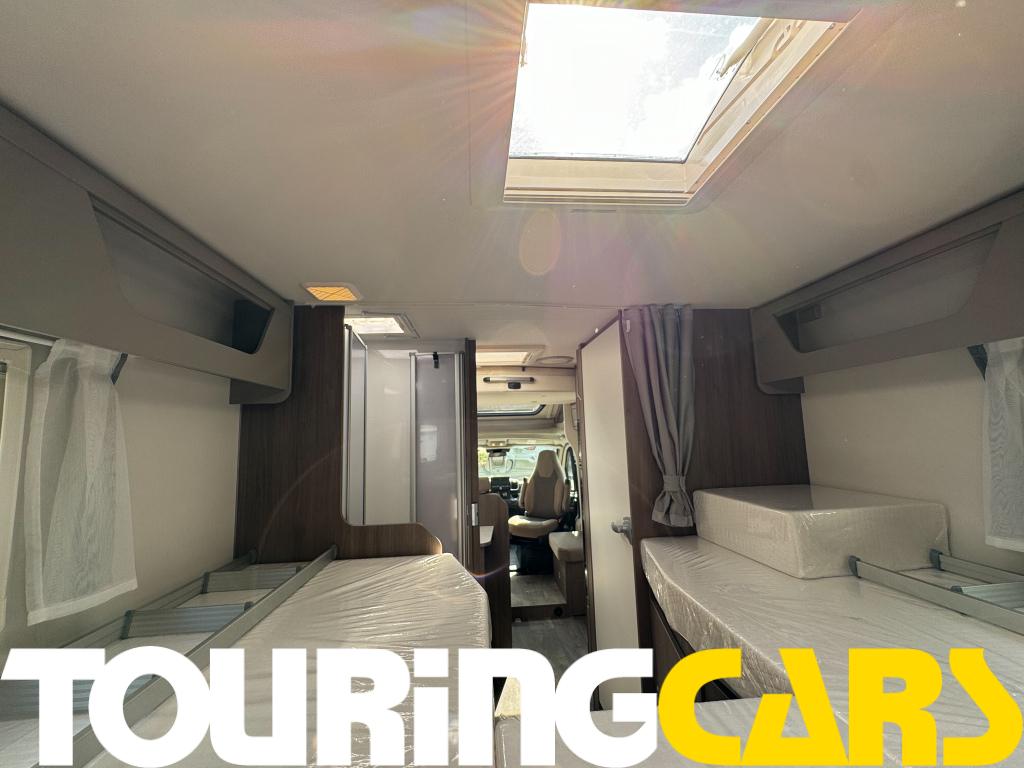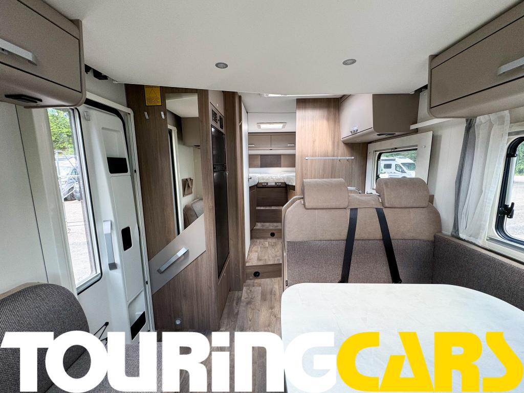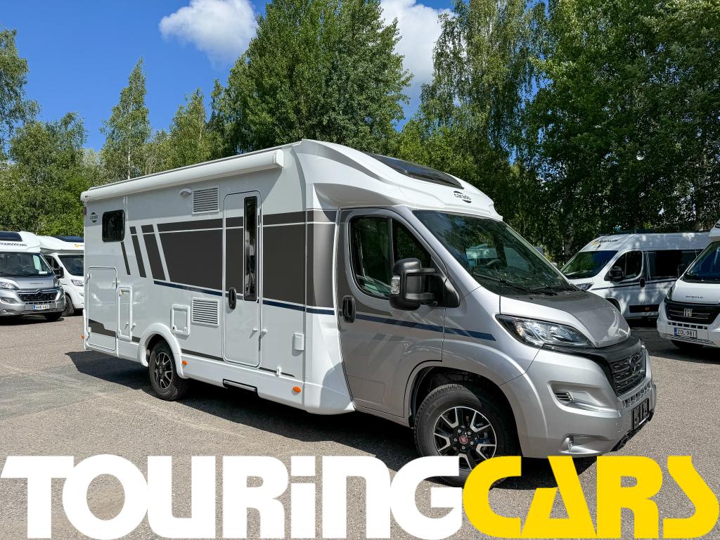 Ohjaamon istuimet verhoiltu asunto-osan kankaalla, kaksi käsinojaa