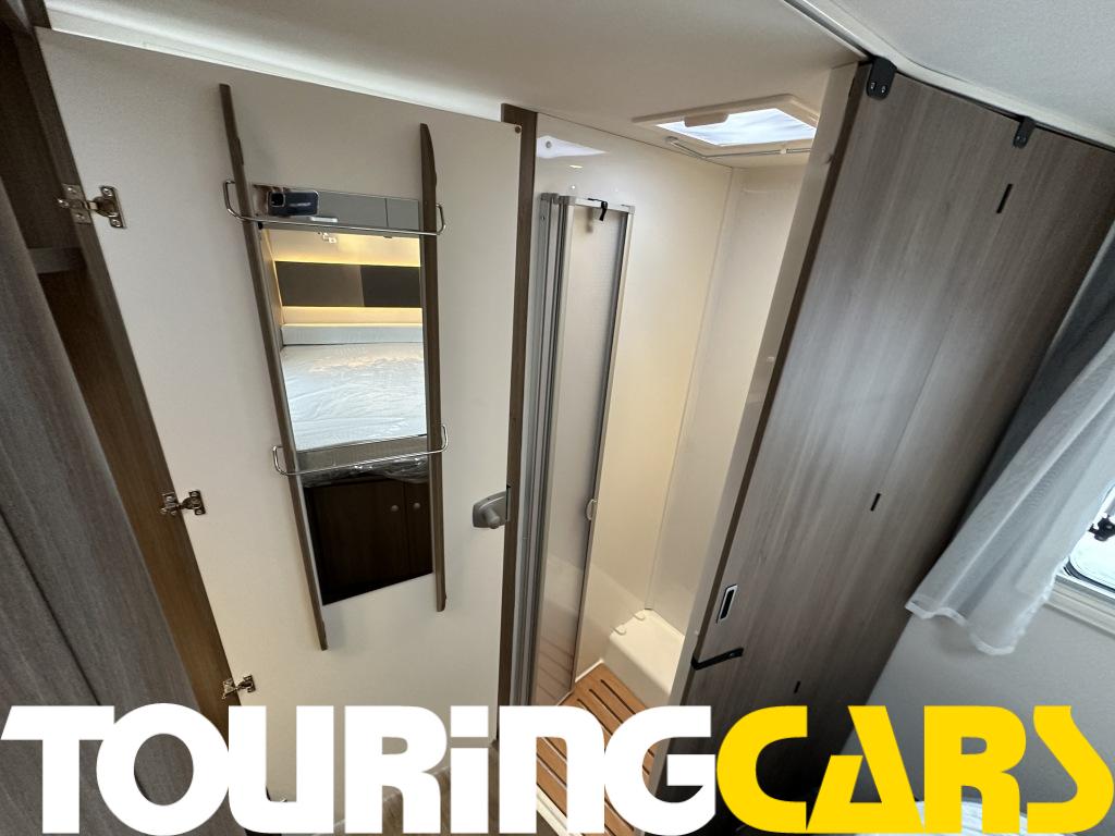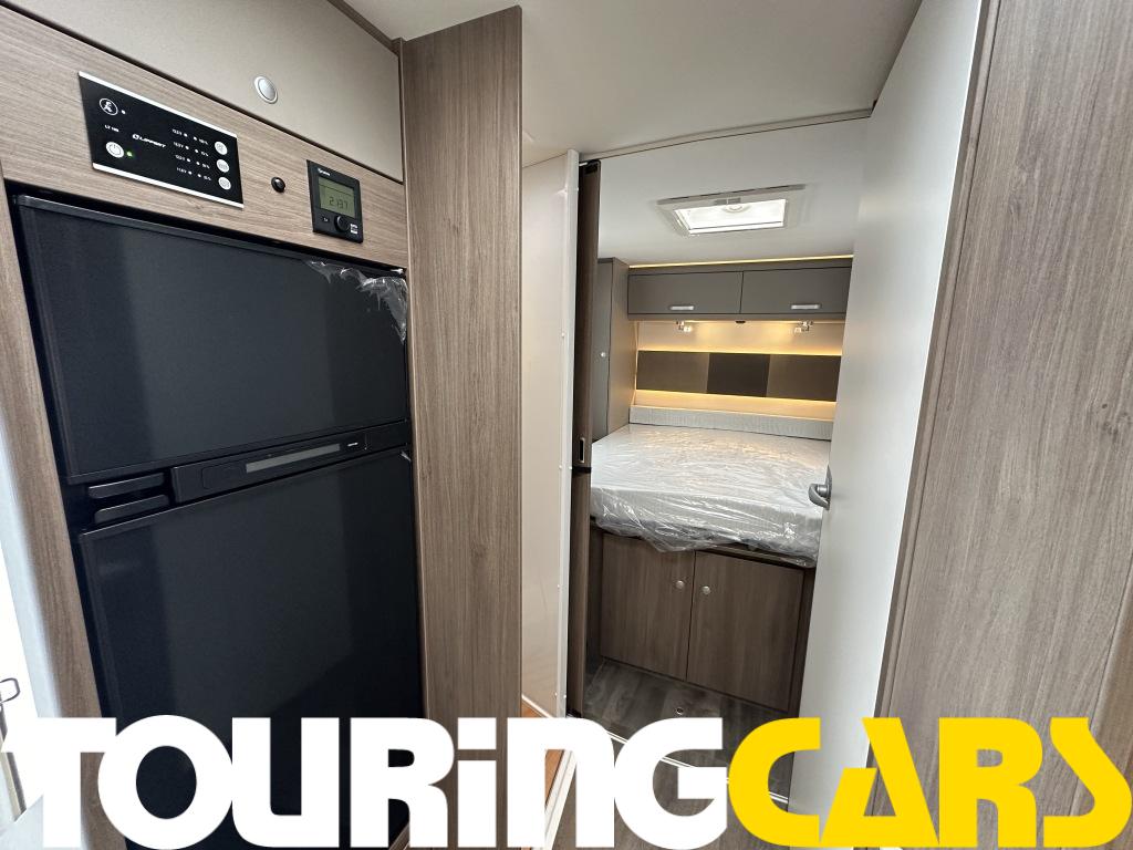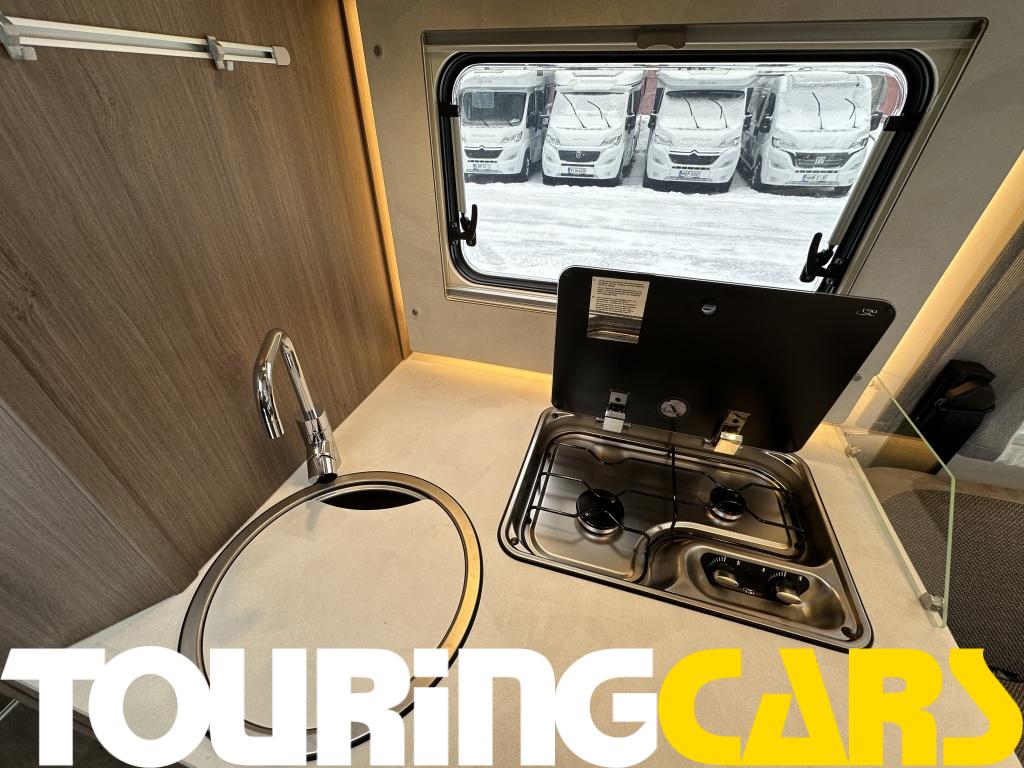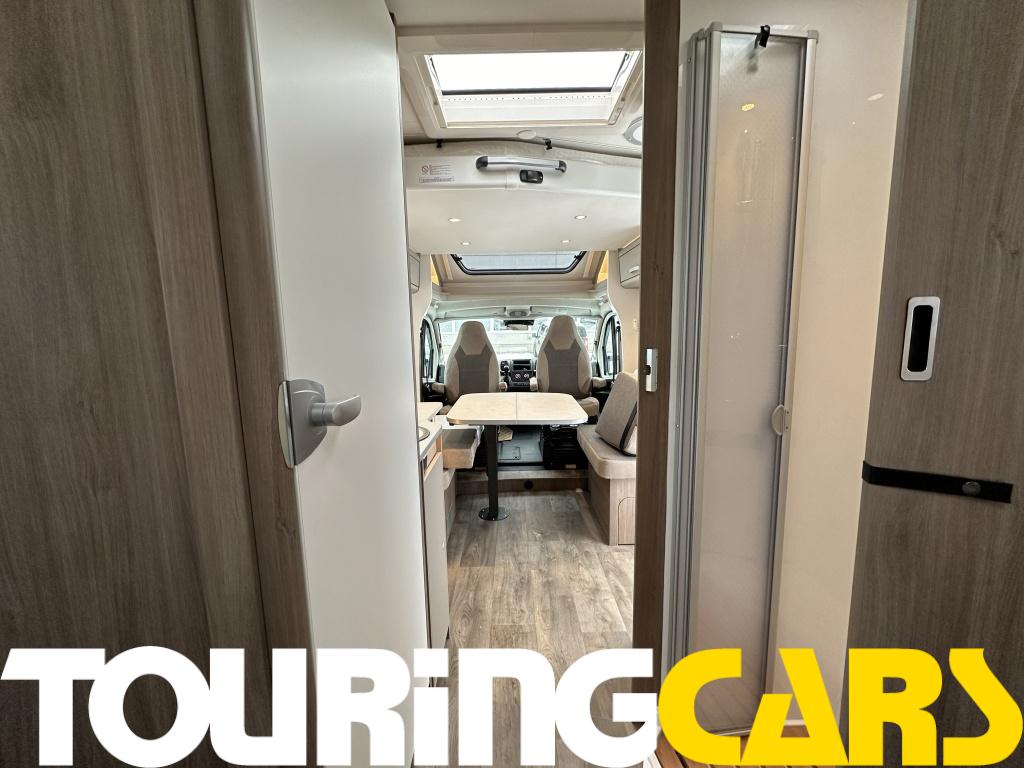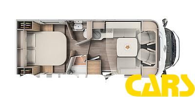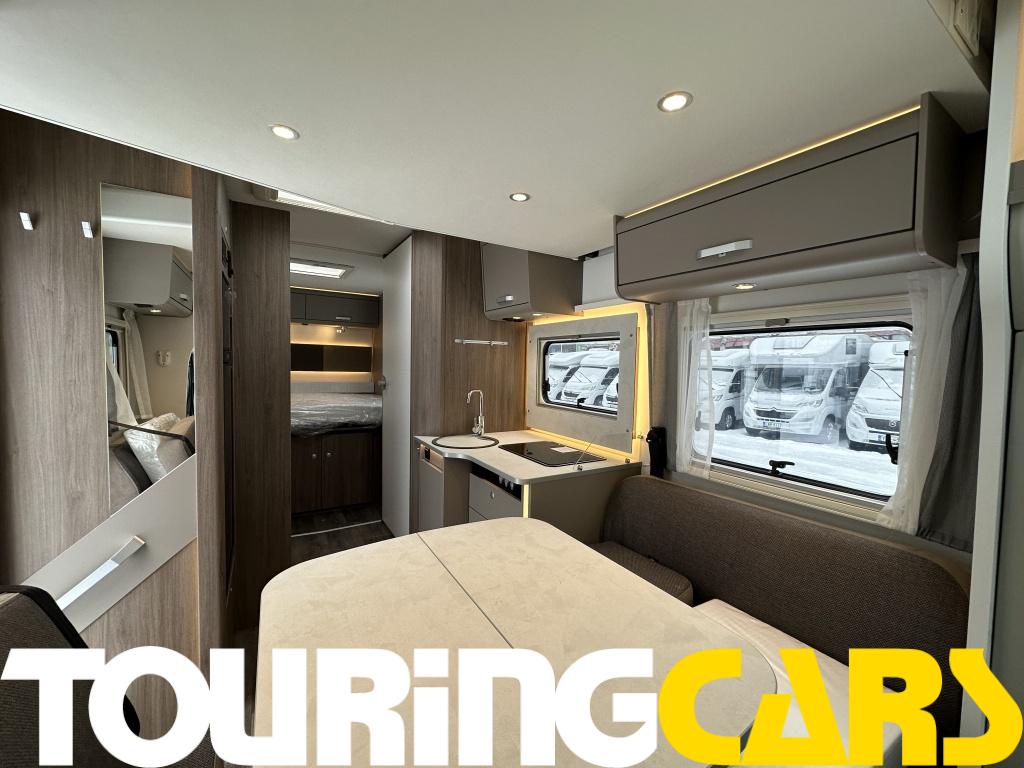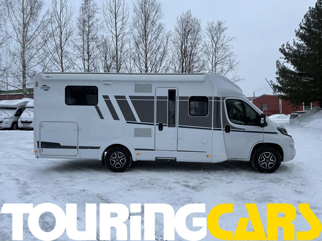 Ohjaamon istuimet verhoiltu asunto-osan kankaalla, kaksi käsinojaa