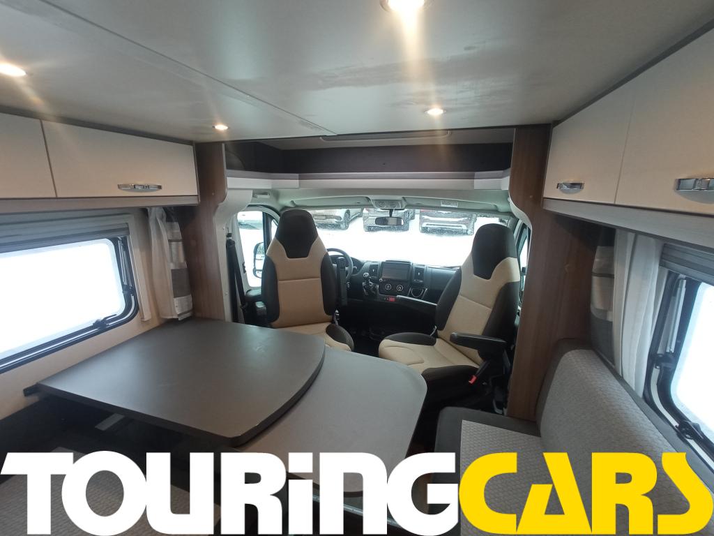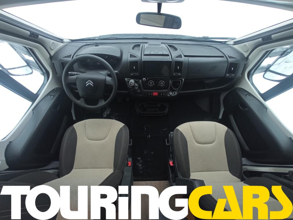 Ohjaamon istuimet verhoiltu samalla kankaalla kuin asunto-osa