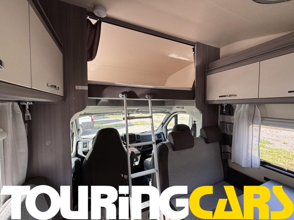 Alkovin vuode on nostettavissa stabiilien tukien varassa yksinkertaisesti ylös; ja niin päiväsaikaan on käytettävissä enemmän pääntilaa
