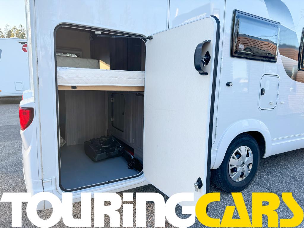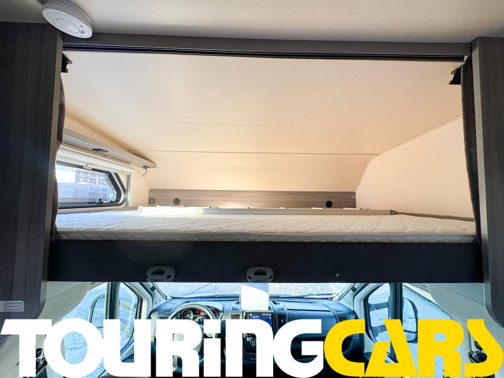 Alkovin vuode on nostettavissa stabiilien tukien varassa yksinkertaisesti ylös; ja niin päiväsaikaan on käytettävissä enemmän pääntilaa