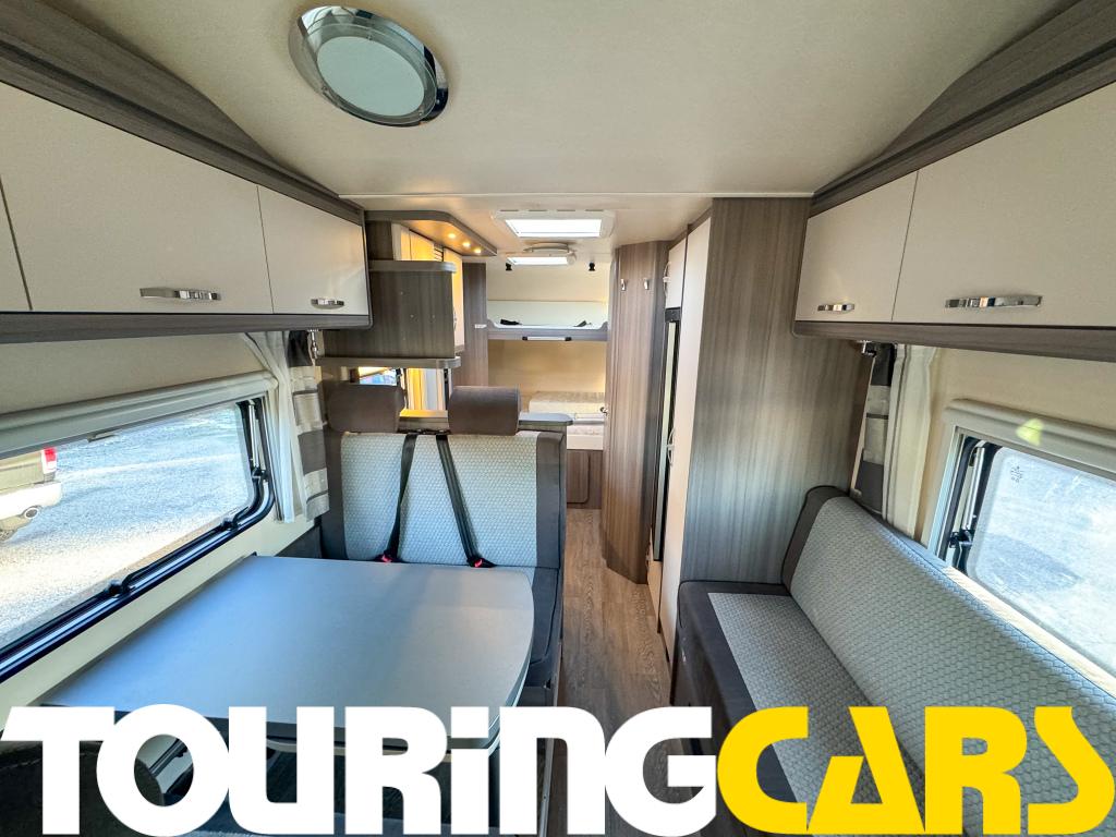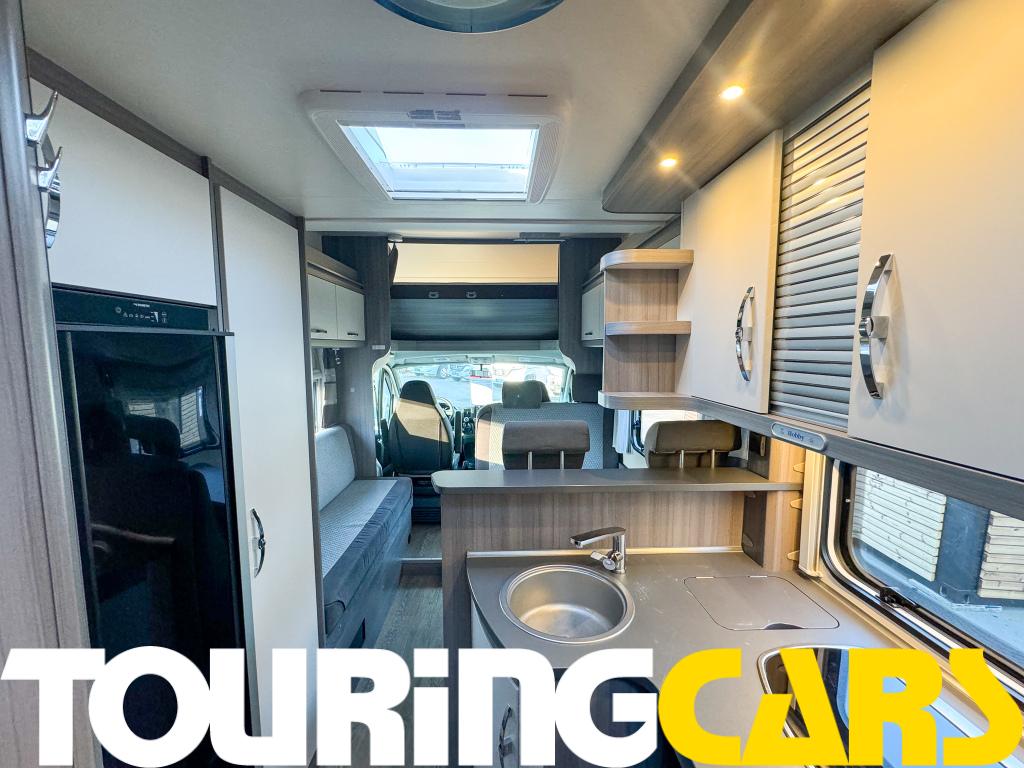 Vakiovarusteinen Dometic-kattoluukku pimennys- ja hyttysverholla takaa raikkaan ilman saannin.