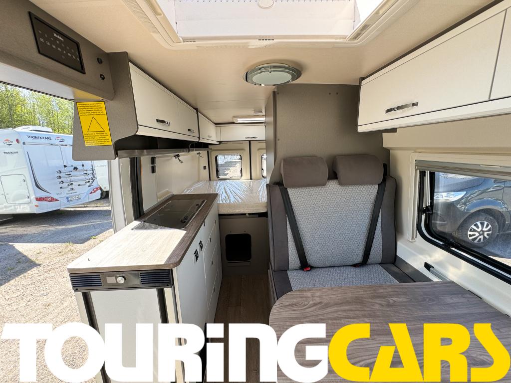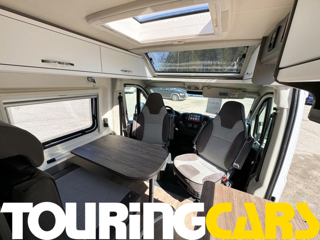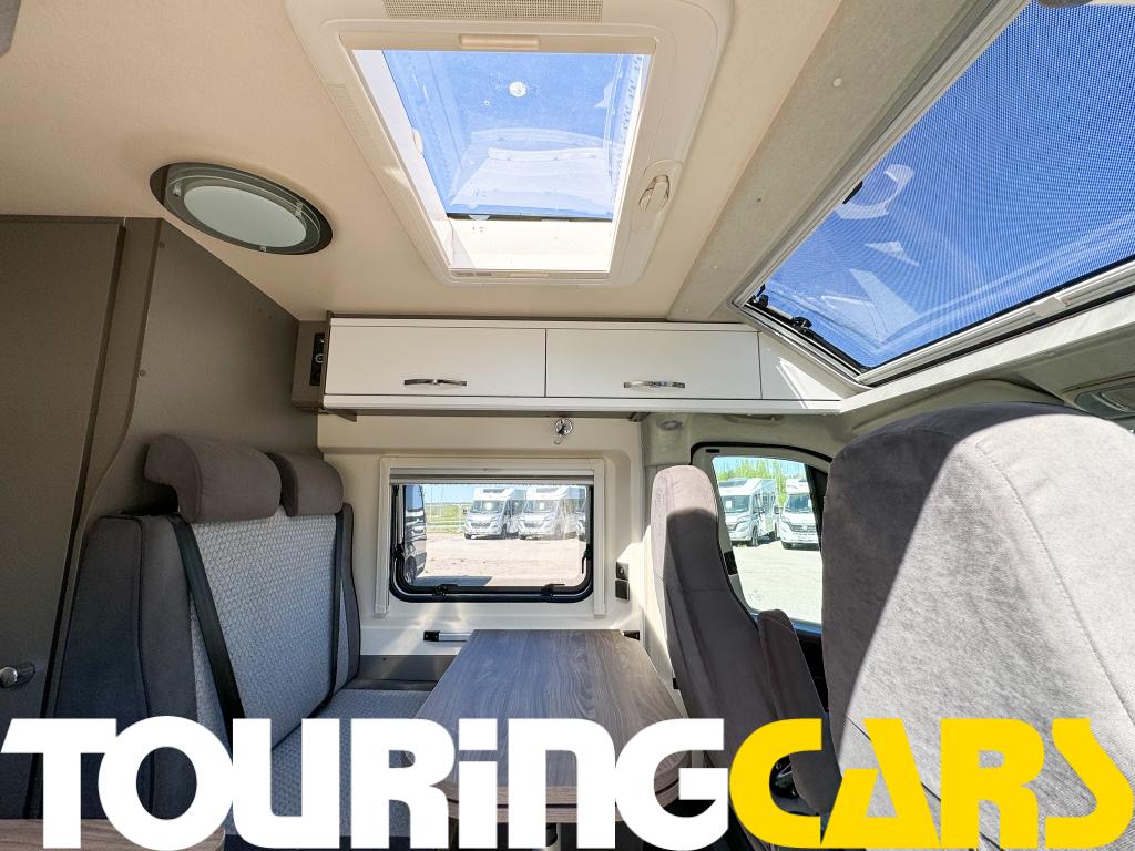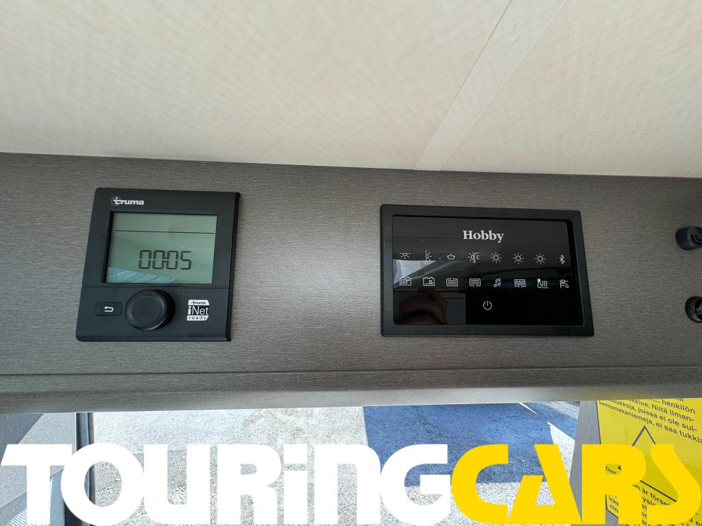 Panoraamakattoikkuna HOBBY TOP, avattava, kaksinkertainen lasitus ja tummennettu, REMIS pimennysverhojärjestelmä ohjaamon etu-ja sivuikkunoissa, Tablettitietokoneen teline ja USB-latauspistoke