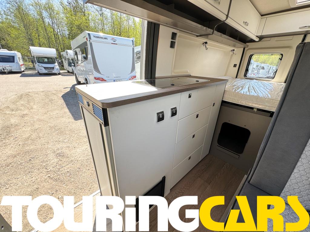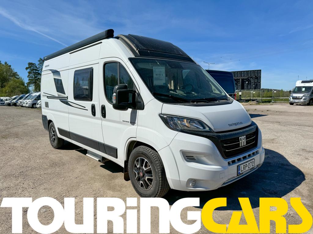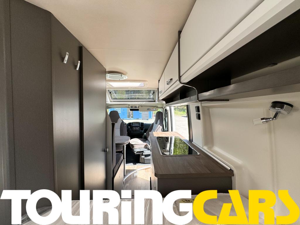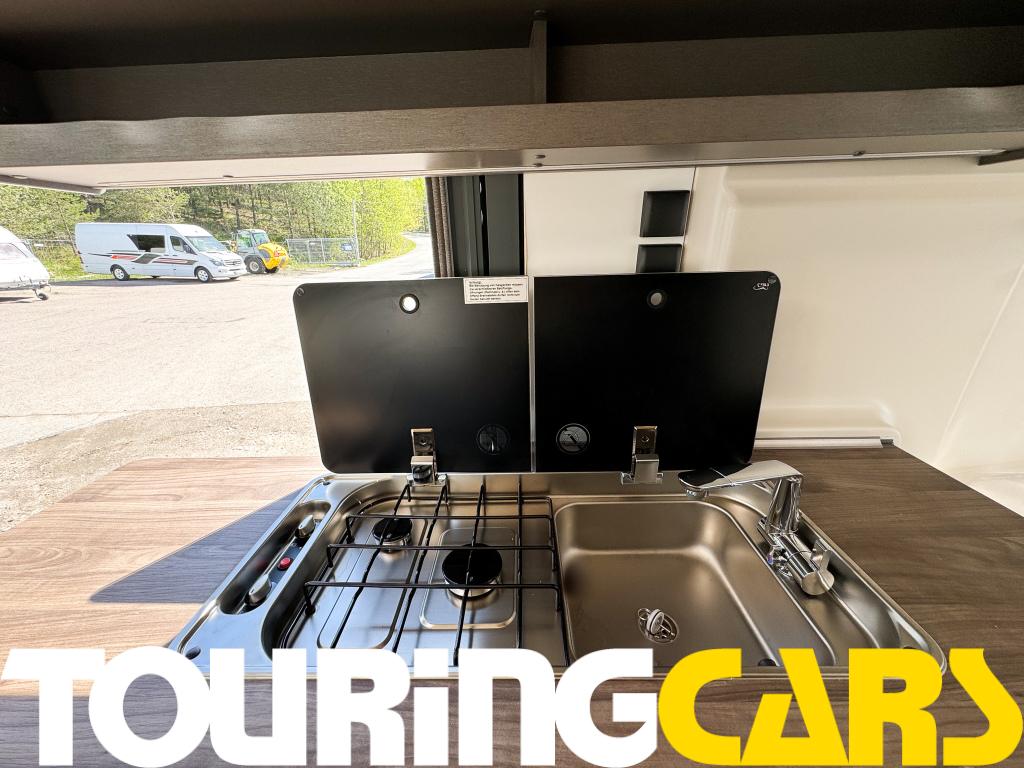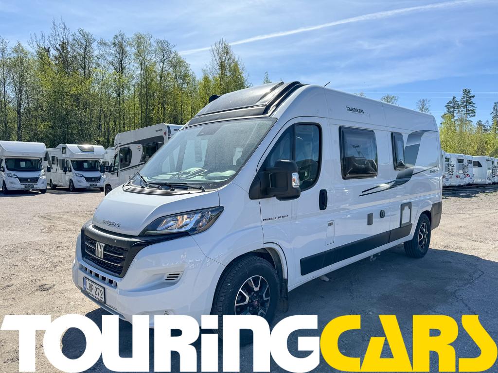 Panoraamakattoikkuna HOBBY TOP, avattava, kaksinkertainen lasitus ja tummennettu, REMIS pimennysverhojärjestelmä ohjaamon etu-ja sivuikkunoissa, Tablettitietokoneen teline ja USB-latauspistoke