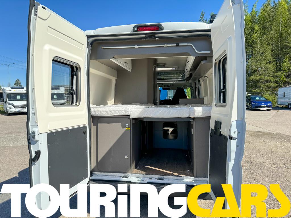 LED-valaistus: Kattovalaisin asuinosassa, Kohdevalaisimet istuinryhmässä, Työtasovalaistus keittiössä, Valaistu tavaratila, Tunnelmavalaistus, Lukuvalot vuodetilassa