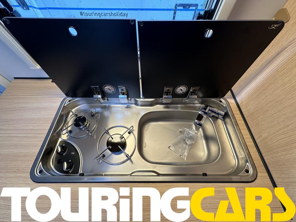 2-liekkinen kaasuliesi, piezo-sytytys, allas ja lasikansi